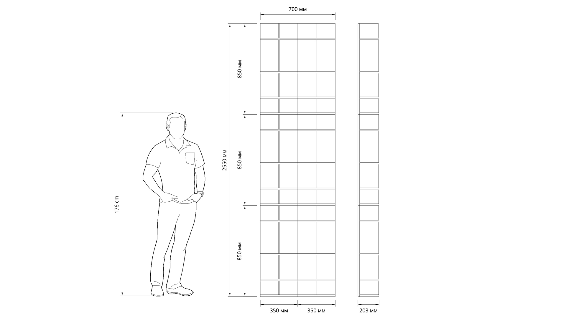 Материал стоек: ЛДСП 16мм. Материал полок: ЛДСП 8 мм.