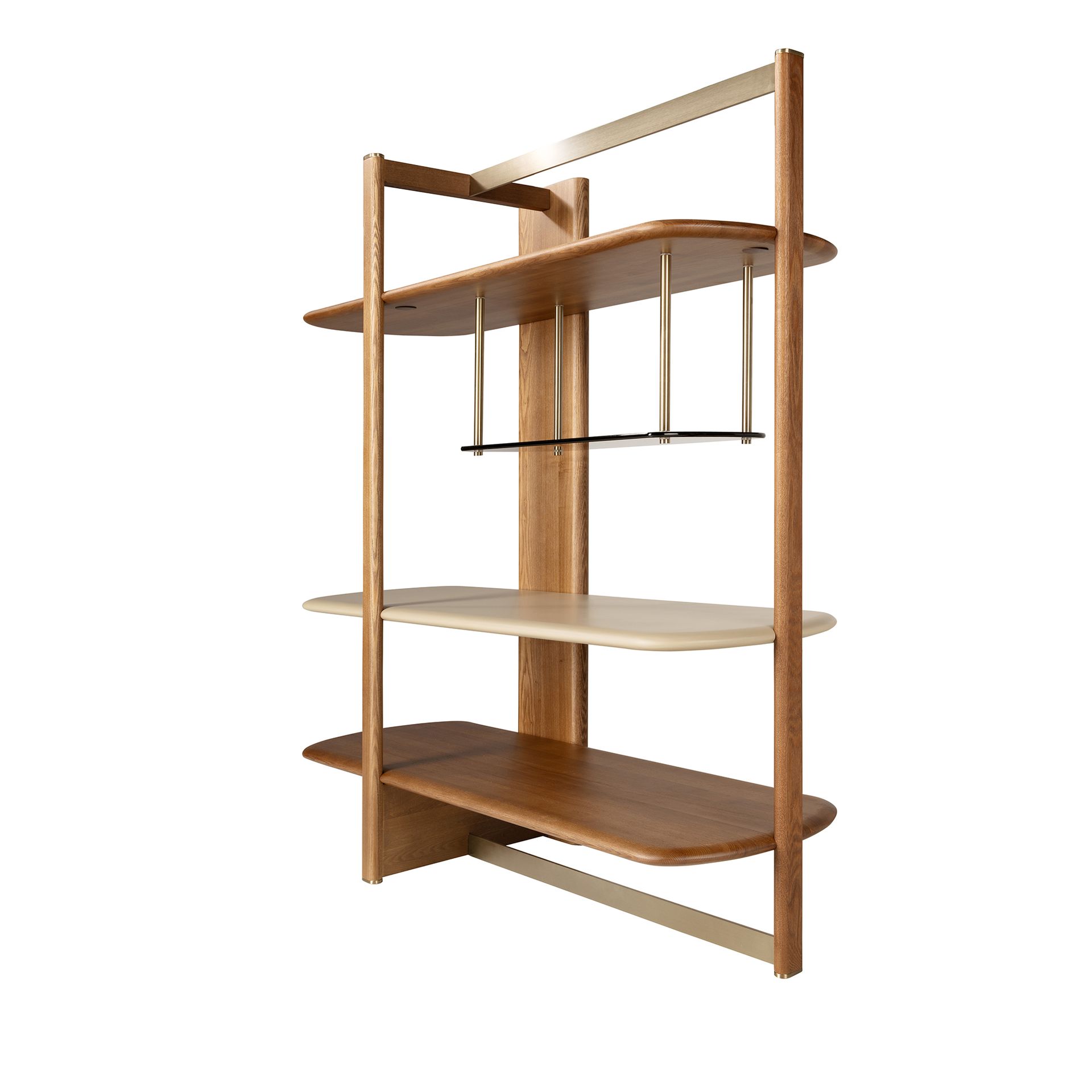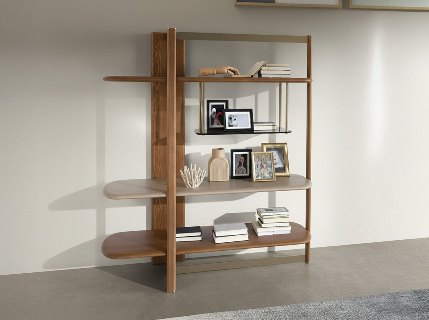 Стеллаж левый 3300 с полками из ореха и серо-бежевого лака