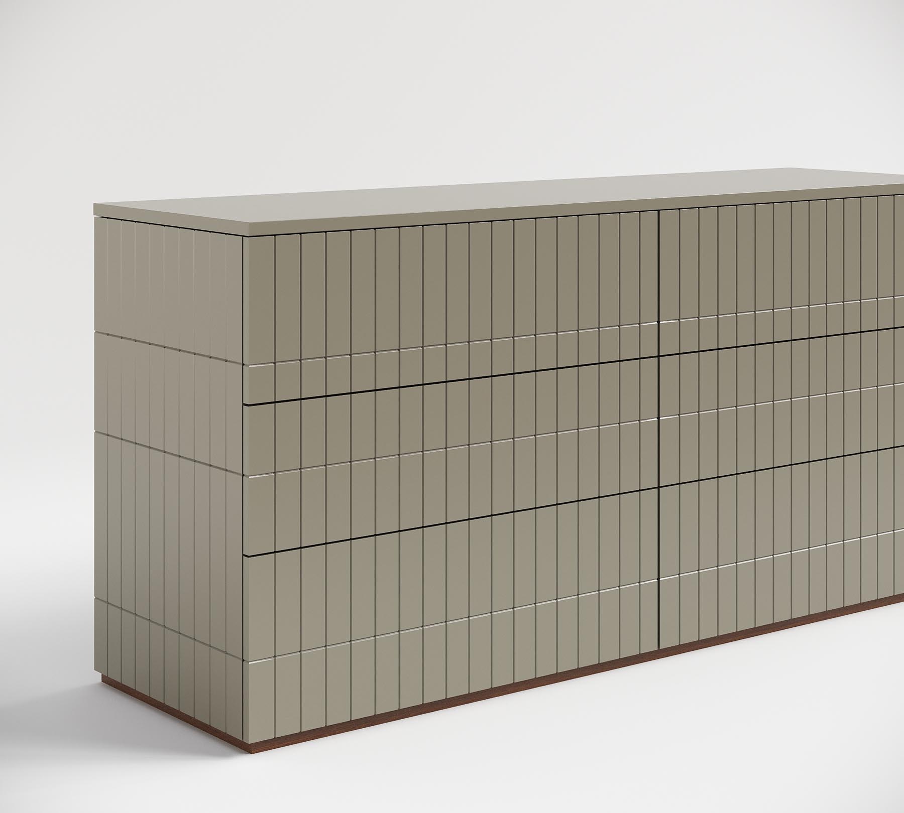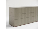 Любой свободный участок коридора или холла можно оформить комодом. Он станет декоративным центром и добавит необходимое место для хранения шапок, шарфов, перчаток, колючей, документов и других мелочей, которые будут упорядочены в отдельных ящиках. Преобразит, с делает уютным и в то же время эффектным ваш коридор. Пространство снизу между опорами (между ящиками и полом) может также использоваться эффективно - служить местом хранения обуви. А столешница станет удобным местом для хранения сумки, и, конечно, вы найдёте как добавить уюта. Наверняка у вас уже есть красивая ваза, картина или зеркало, которые гармонично будут смотреться во входной зоне. Комод с фрезерованным корпусом и основанием из эко дерева. Ящики и дверцы снабжены надежными системами push to open, которые поддерживают эстетику изделия. Размер 160 x 75 x 45 Ширина 160 см Высота 75 см Глубина 45 см