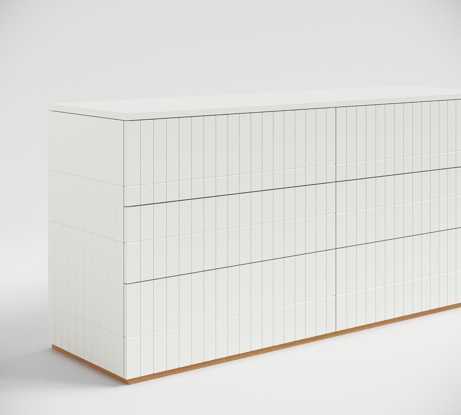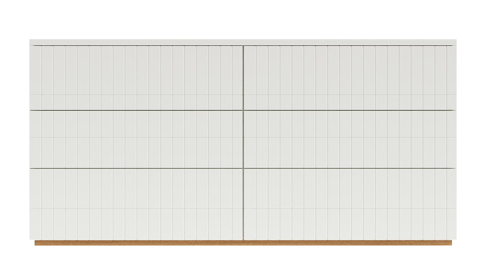 Любой свободный участок коридора или холла можно оформить комодом. Он станет декоративным центром и добавит необходимое место для хранения шапок, шарфов, перчаток, колючей, документов и других мелочей, которые будут упорядочены в отдельных ящиках. Преобразит, с делает уютным и в то же время эффектным ваш коридор. Пространство снизу между опорами (между ящиками и полом) может также использоваться эффективно - служить местом хранения обуви. А столешница станет удобным местом для хранения сумки, и, конечно, вы найдёте как добавить уюта. Наверняка у вас уже есть красивая ваза, картина или зеркало, которые гармонично будут смотреться во входной зоне. Комод с фрезерованным корпусом и основанием из эко дерева. Ящики и дверцы снабжены надежными системами push to open, которые поддерживают эстетику изделия. Размер 160 x 75 x 45 Ширина 160 см Высота 75 см Глубина 45 см