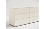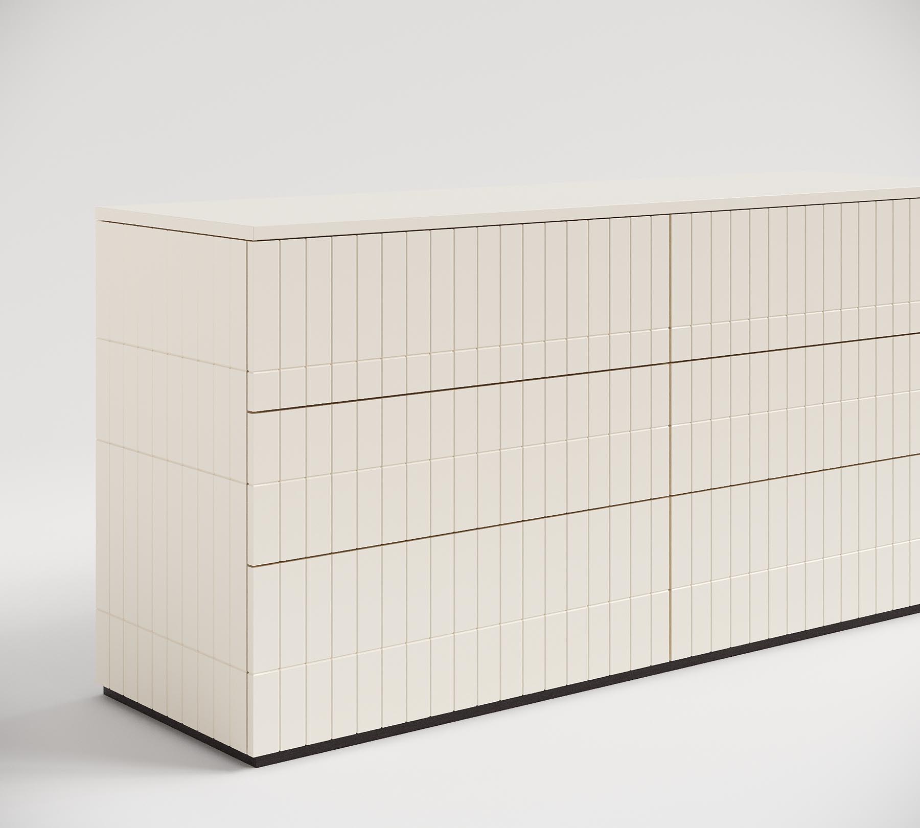 Любой свободный участок коридора или холла можно оформить комодом. Он станет декоративным центром и добавит необходимое место для хранения шапок, шарфов, перчаток, колючей, документов и других мелочей, которые будут упорядочены в отдельных ящиках. Преобразит, с делает уютным и в то же время эффектным ваш коридор. Пространство снизу между опорами (между ящиками и полом) может также использоваться эффективно - служить местом хранения обуви. А столешница станет удобным местом для хранения сумки, и, конечно, вы найдёте как добавить уюта. Наверняка у вас уже есть красивая ваза, картина или зеркало, которые гармонично будут смотреться во входной зоне. Комод с фрезерованным корпусом и основанием из эко дерева. Ящики и дверцы снабжены надежными системами push to open, которые поддерживают эстетику изделия. Размер 160 x 75 x 45 Ширина 160 см Высота 75 см Глубина 45 см