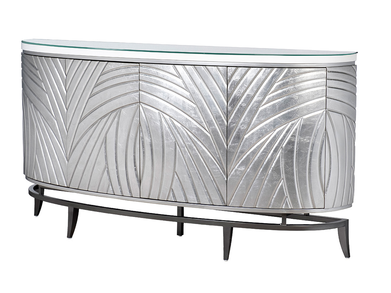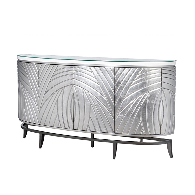 Запросить индивидуальное предложениеДизайнерский серебристый комод – полноценный арт-объект в интерьере. Яркий акцент, который сразу привлекает к себе внимание и занимает одну из центральных позиций в обстановке гостиной. Этот эффектный комод с полками легко справится с декоративной ролью в интерьере и станет отличным дополнением спальни в стиле ар-деко или неоклассика. Мебель отличается оригинальным дизайном и весьма интересной фактурой. Особого изящества и легкости ей придает сребристый цвет и обтекаемая форма. Благодаря необычному оформлению этот красивый комод в стиле ар-деко станет изюминкой современной обстановки.
