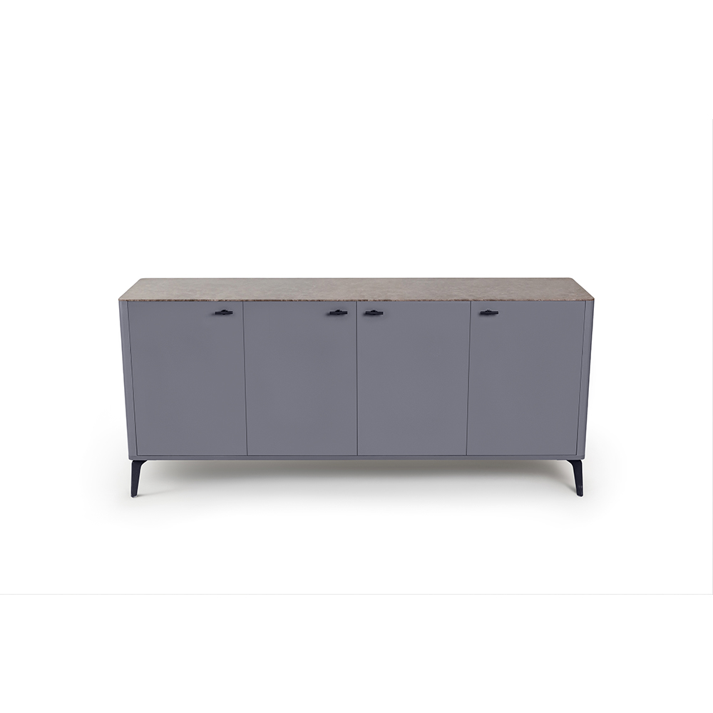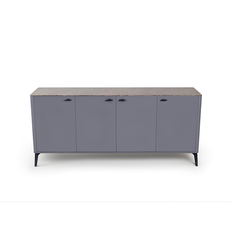 Буфет выполнен из МДФ облицованным инновационным материалом soft touch. Ящики в отделке текстиль украшают внутреннее пространство буфета. Качественная, скрытая система выдвижения придаёт легкость и комфорт при использовании. Топ выполнен из искусственного камня, повторяющего природный рисунок мрамора. Мягкая, обтекаемая форма легко вольется в Ваш интерьер и сделает его уютным и стильным.