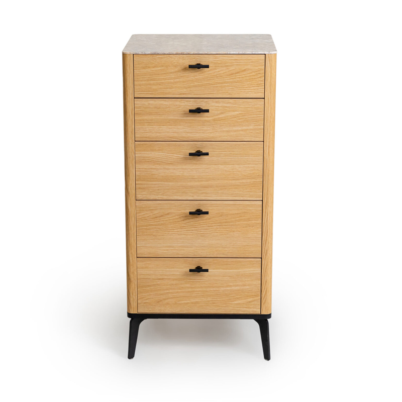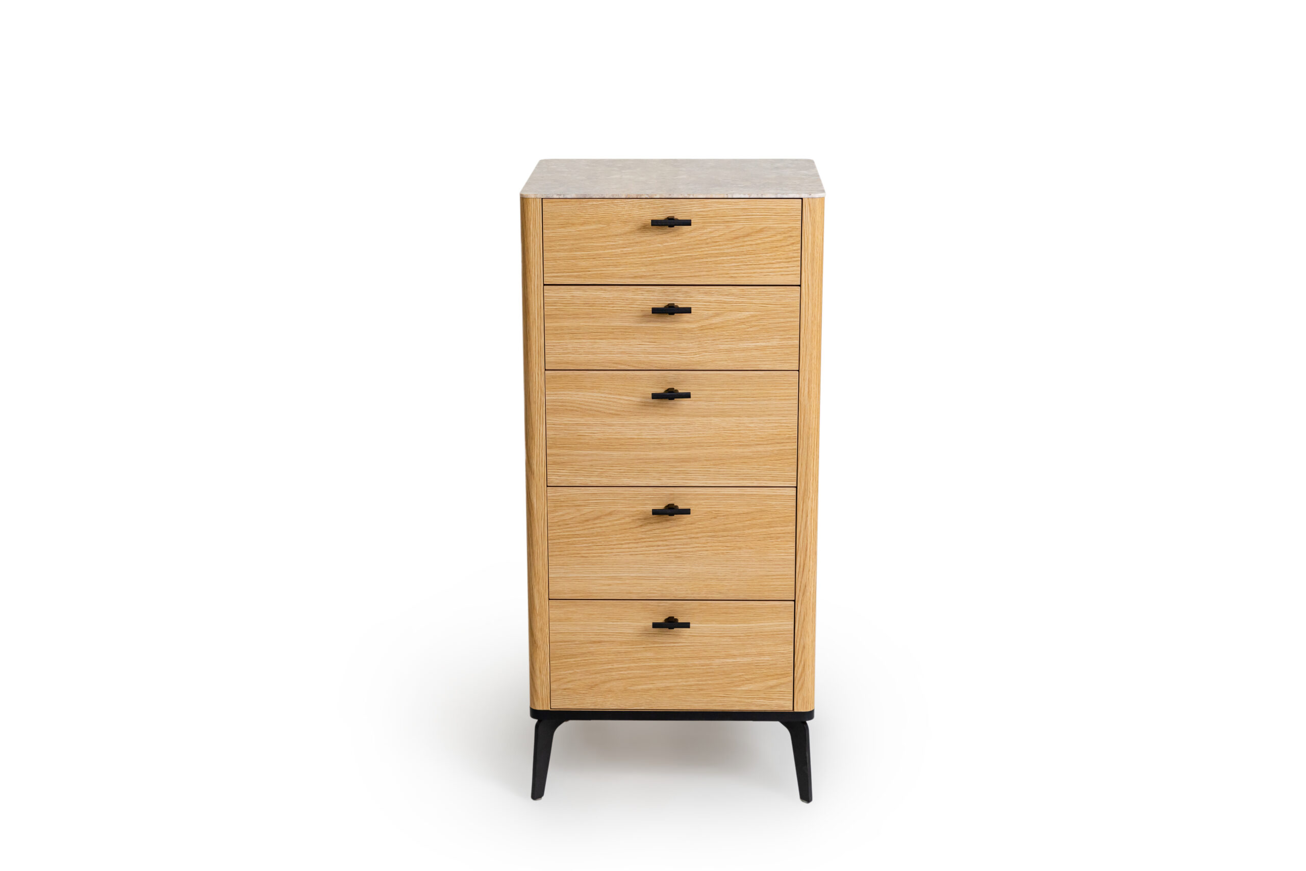 Комод 5 ящиков цвет корпуса дуб натуральный, цвет топа желтый песок, (Габариты: 500 x 430 x 1100 mm)