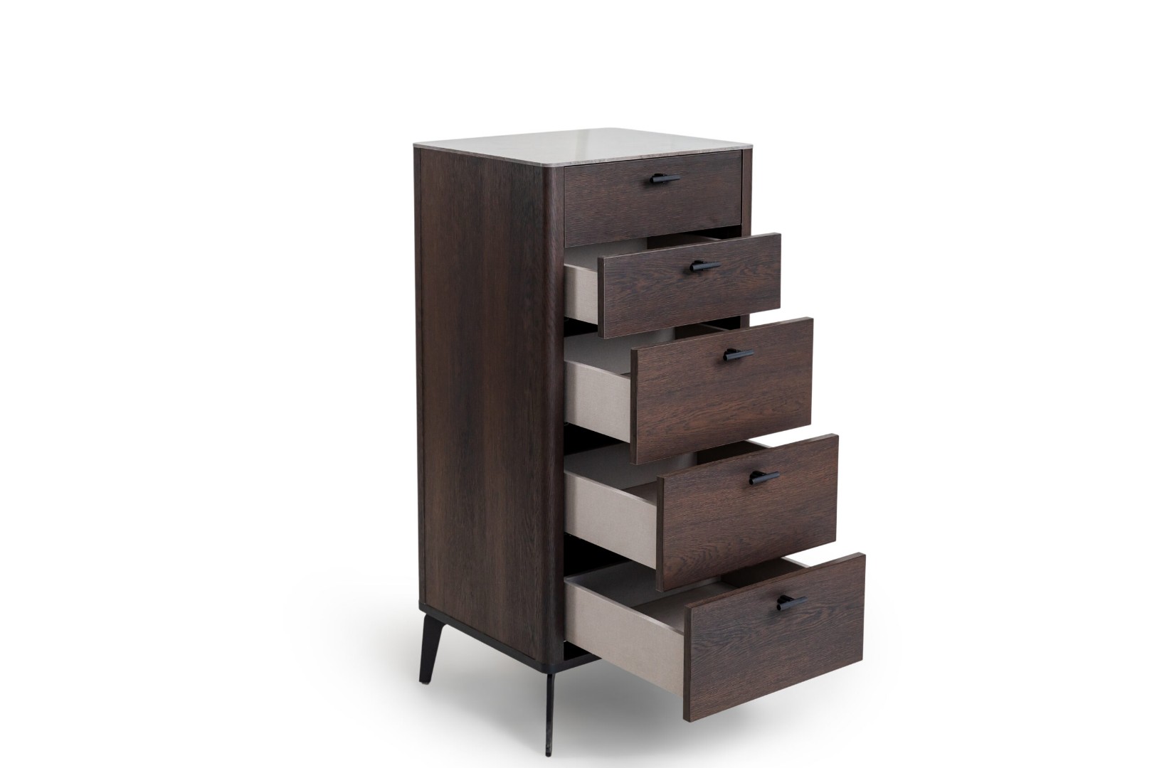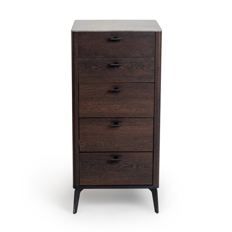 Комод 5 ящиков цвет корпуса дуб темно коричневый, цвет топа коричневый песок, (Габариты: 500 x 430 x 1100 mm)