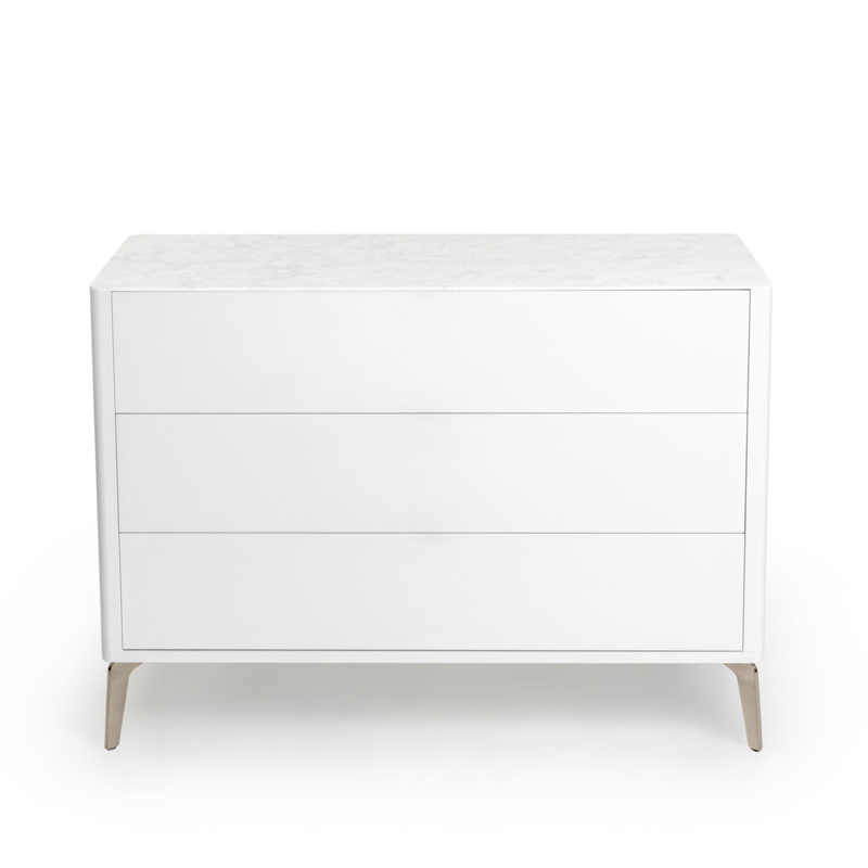 Комод 3 ящика цвет корпуса белоснежный soft touch, цвет топа белый мрамор, (Габариты: 1100 х 430 х 810 mm)