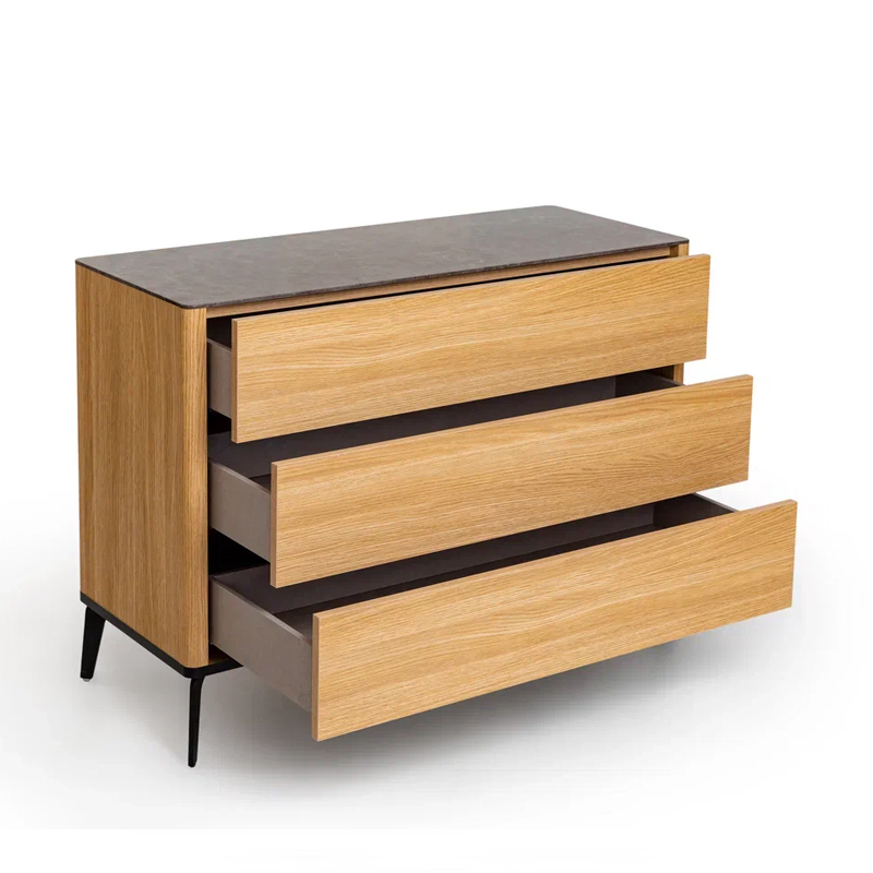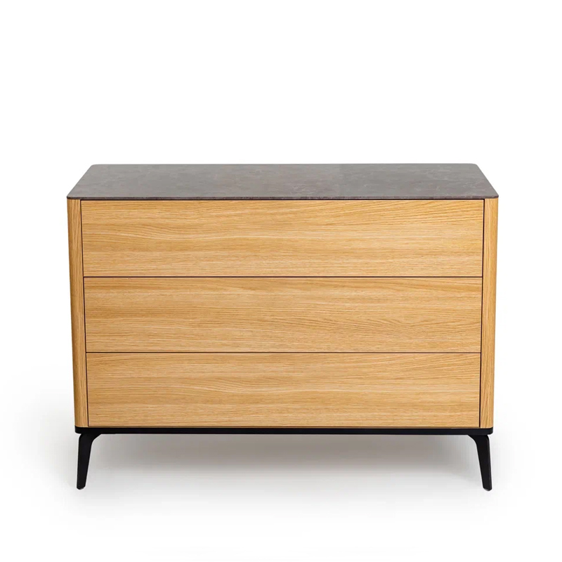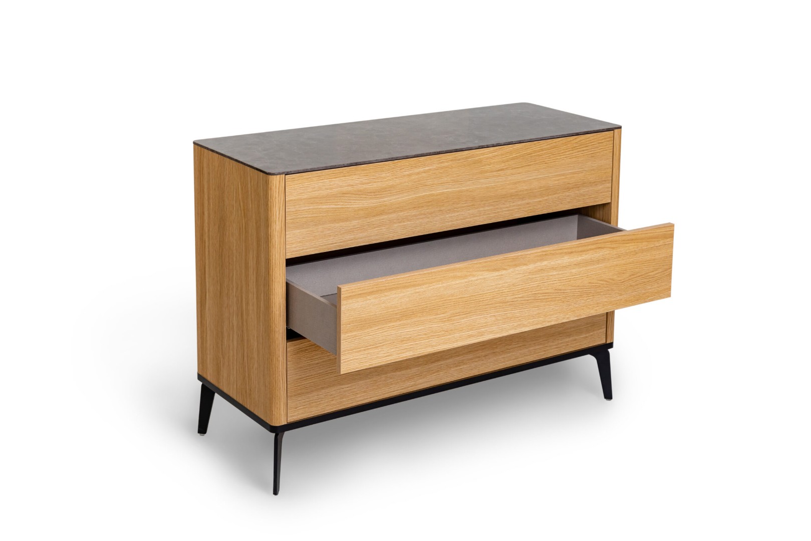 Поверхность корпуса комода точно повторяет текстуру натурального дуба с глубокими порами дерева, которые прекрасно просматриваются. Качественная, скрытая система выдвижения придаёт легкость и комфорт при использовании. Топ выполнен из искусственного камня, повторяющего природный рисунок мрамора. Мягкая, обтекаемая форма легко вольется в Ваш интерьер и сделает его уютным и стильным.