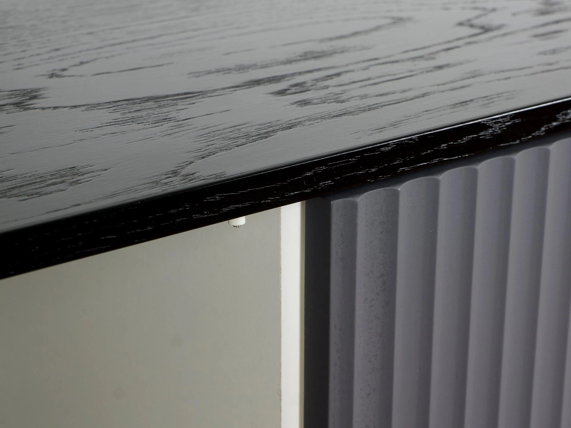 Лицевая фурнитура отсутствует, открывание фасадов по принципу нажал - открыл. Основания изделий металлические черного цвета с регулируемыми пластиковыми подпятниками.