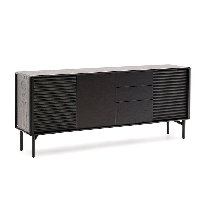 Комод Lenon с 3 дверцами и 3 ящиками черный из массива и шпона дуба