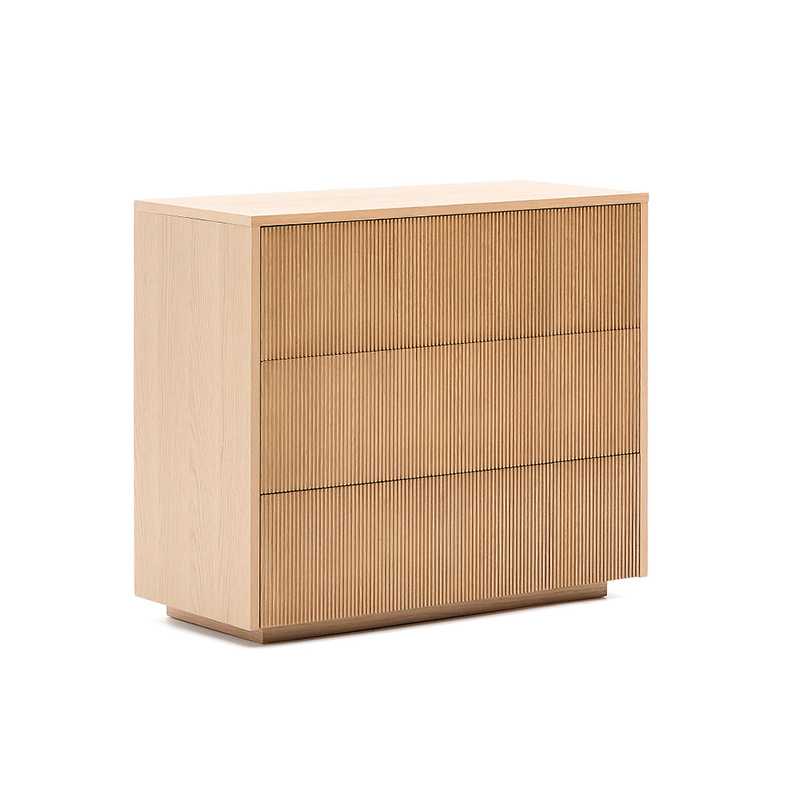 Комод Helvine с 3 ящиками из дубового шпона и закаленного стекла, 86 x 79