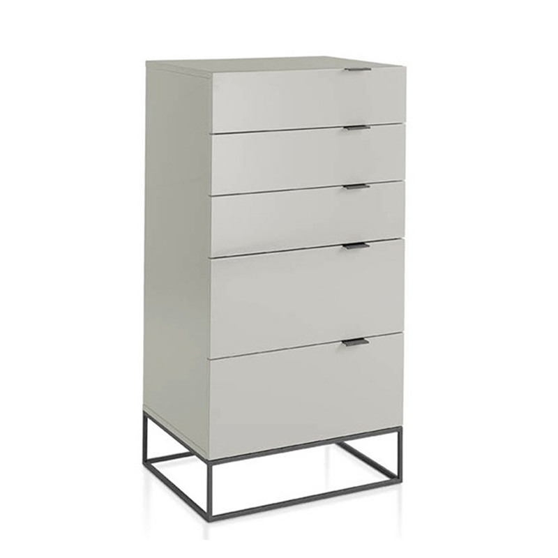 Запросить индивидуальное предложениеШифоньер Personale от фабрики Angel Cerda – лаконичный минимализм для городских интерьеров. Шифоньер Personale с первого взгляда убеждает в своем безупречном исполнении. Гладкий фасад хорошо сочетается с любым интерьером, а разные по вместительности ящики – показатель эргономичности изделия во время эксплуатации. Эту модель стоит рассмотреть людям современным, стремящихся сделать обстановку в своей квартире модной и удобной. Шифоньер прямоугольной формы. В каркас вмонтировано пять выдвижных ящиков разной высоты. Все они оснащены мягкой системой закрытия. Также предусмотрены металлические ручки в виде пластин. Материал изготовления – МДФ с лаковым покрытием. Для базового фабричного варианта цвет у изделия серый. Возможна окраска в любой цвет палитры Ral. Опора сделана из стали, покрыта черной порошковой краской для защиты от негативного воздействия внешней среды. Она имеет рамочную конструкцию, которая прикручена к изделию по всему периметру. Это обеспечивает устойчивость и стойкость к высоким весовым нагрузкам. Прочность металла – гарантия надежности изделия. Цвета отделки указываются в соответствии с каталогом производителя. Допускается незначительное отклонение в цвете, обусловленное техническими особенностями цветопередачи фотографий. Потребуется сборка. В комплектацию включен крепеж, инструкция. В коллекции корпусной мебели Angel Cerda представлена другая мебель с аналогичным дизайном. Это прикроватная тумбочка Estetico и комод Personalidad.