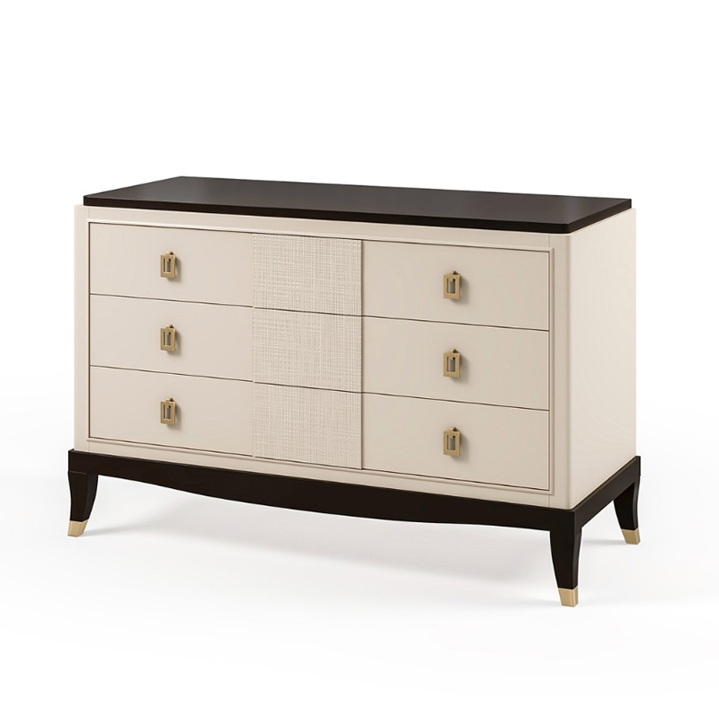 Запросить индивидуальное предложениеКомод с эффектом плетения в центральной части ящиков, металлические ножки.