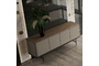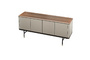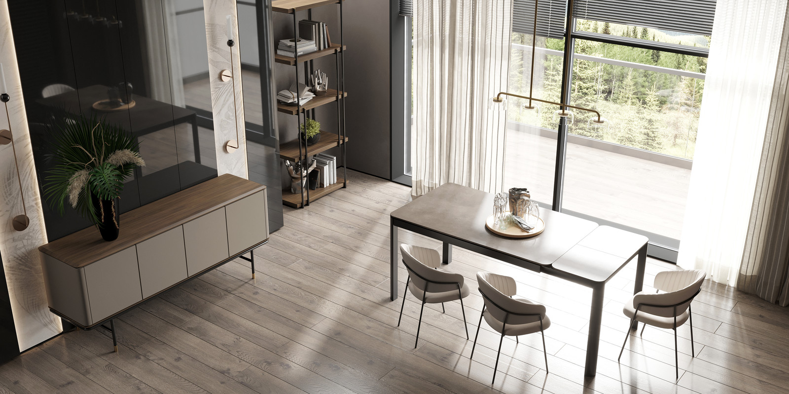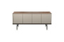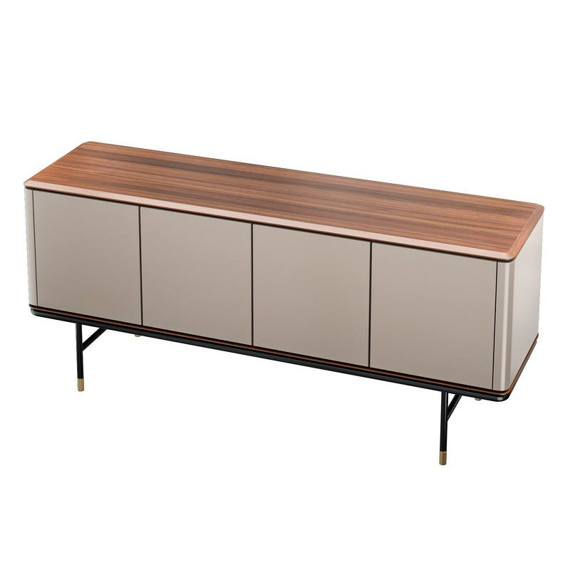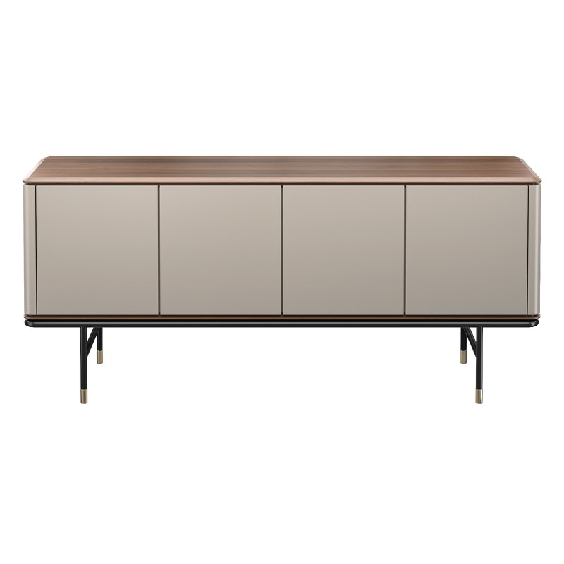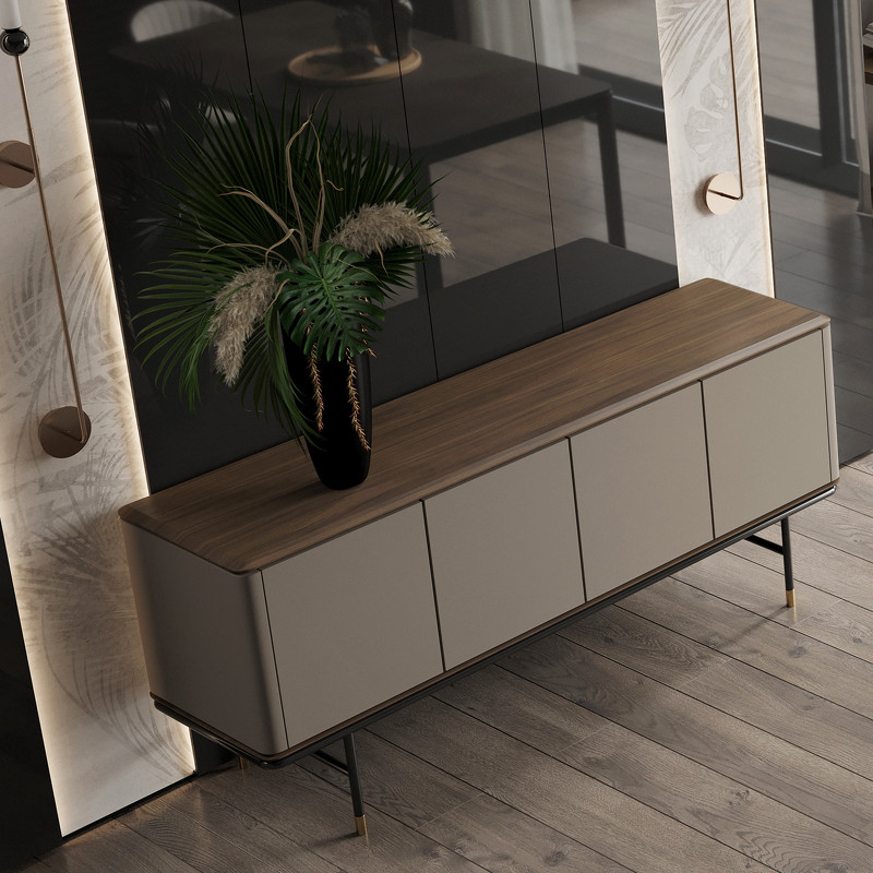 Модель буфета имеет деревянные фасады из натурального шпона ореха и столешницу со скругленными углами, что предотвращает травмирование.