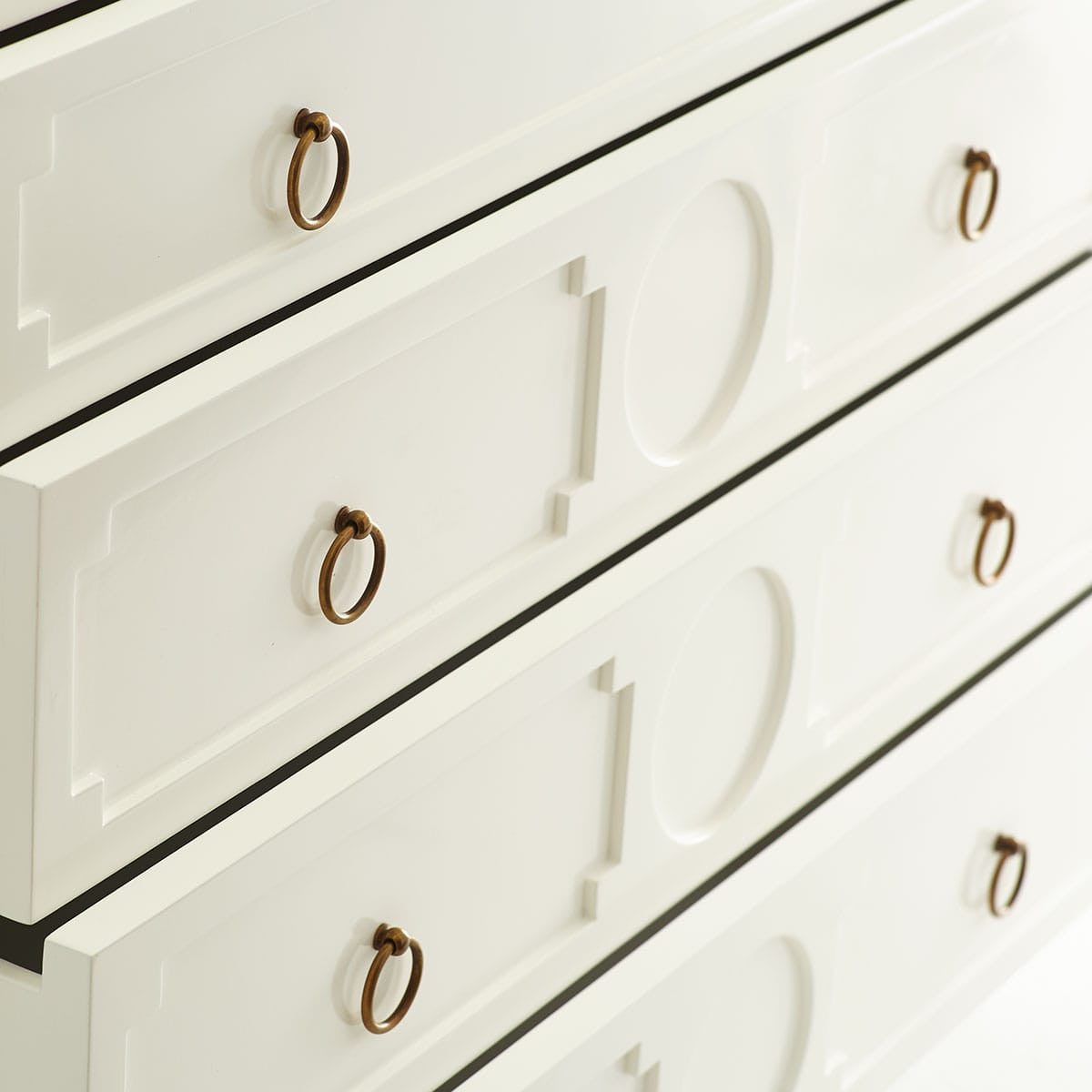 Запросить индивидуальное предложениеКомод "Густав" с четырьмя ящиками прекрасно подойдет для спальни практически любого размера и даст Вам пространство для размещения одежды и других предметов, которые необходимы для вашего дома. Он сделан из дерева, окрашен в белый цвет и стилизован латунными вытяжными кольцами. Хорошо продуманные, круглые и прямые линии, этого предмета в сочетание с стилем семейного антиквариата делают дизайн этой тумбы универсальным и неподвластным времени.