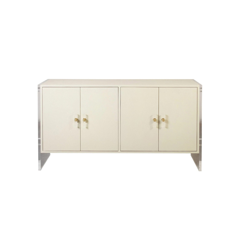 Запросить индивидуальное предложениеБежевый комод “Берк” с двумя ящиками, имеет отделку из шагрени, прозрачные акриловые боковые ножки и акцентную металлическую фурнитуру.