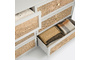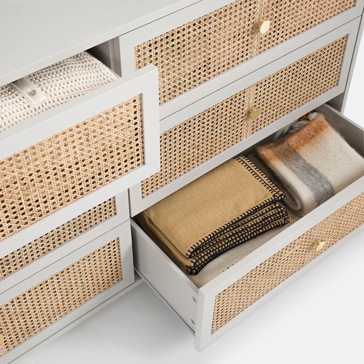 • Фасад ящиков из МДФ и массив сосны с лакированным покрытием, стебли ротанга с натуральным покрытием, направляющие из стали