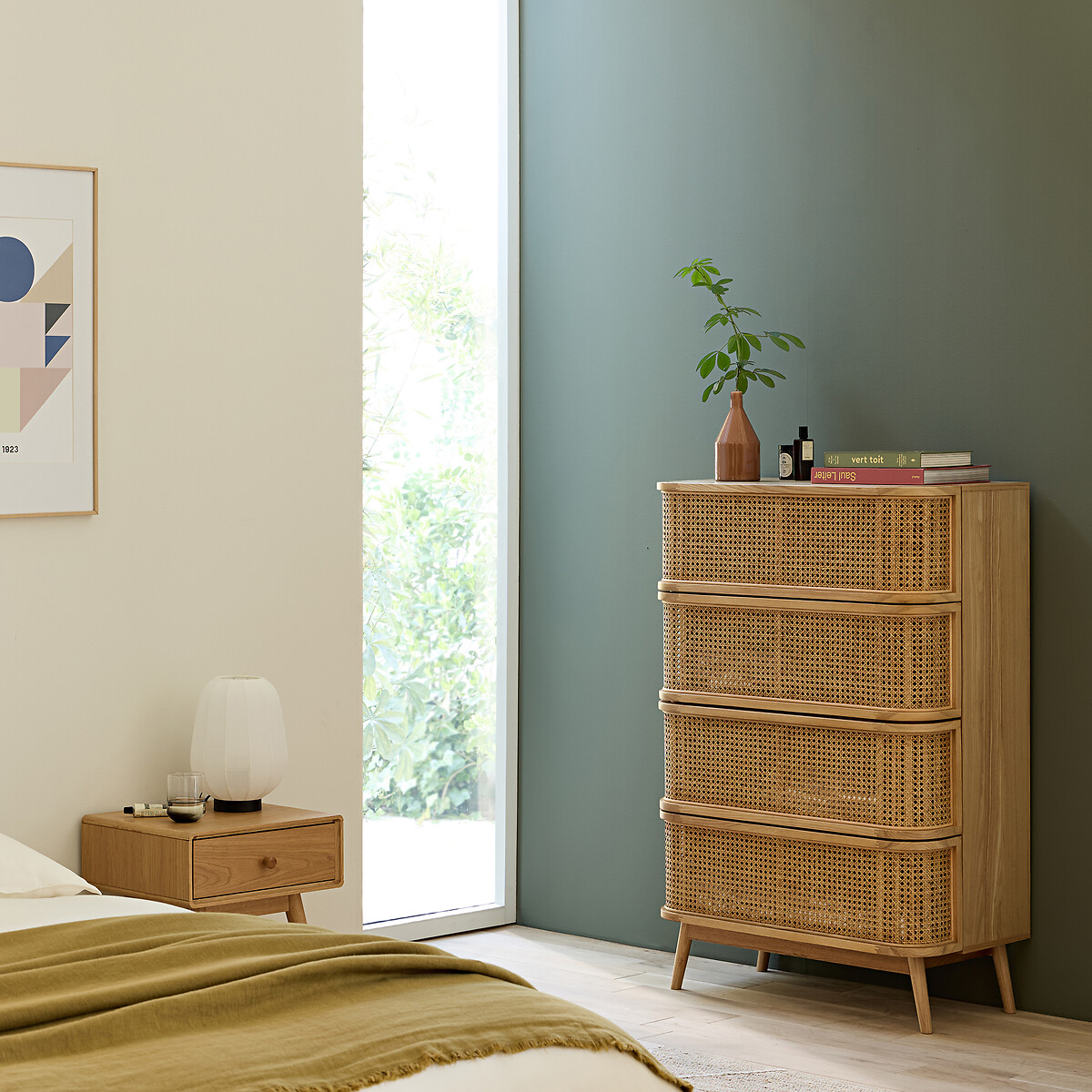 Комод с 4 плетеными ящиками Laora бежевый