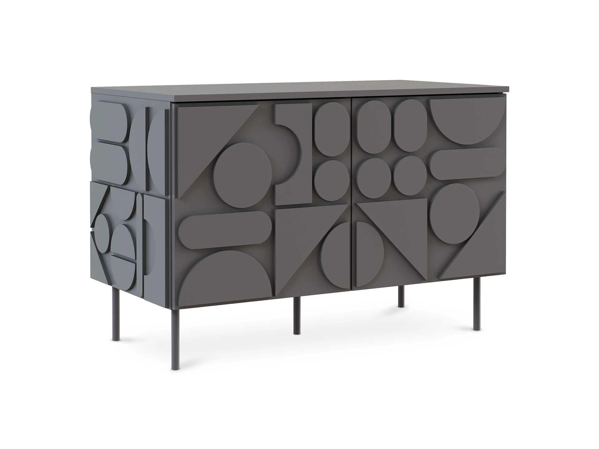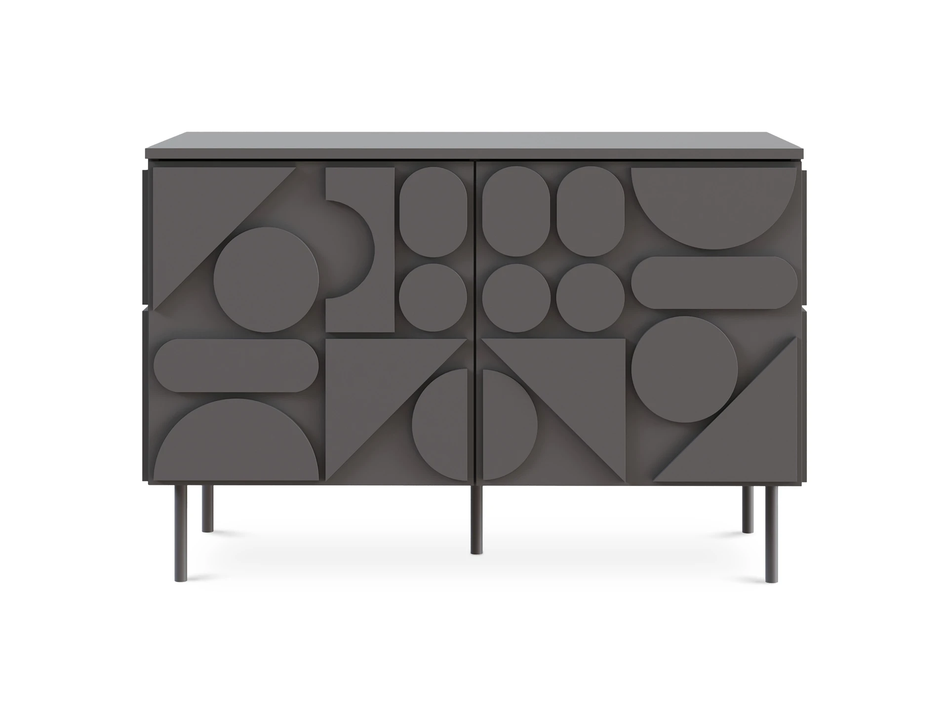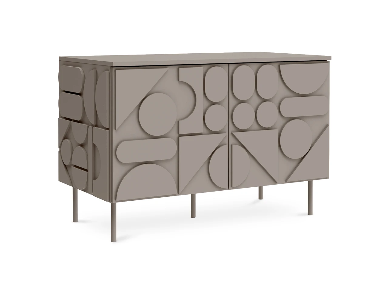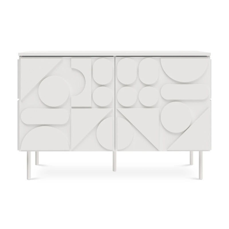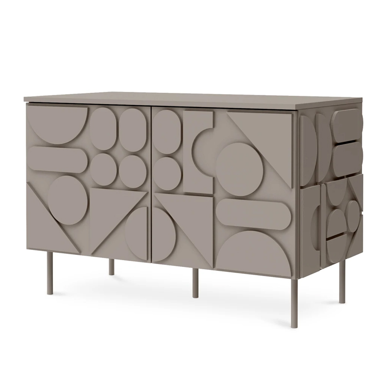 Запросить индивидуальное предложениеMilton — линейка корпусной мебели для хранения с динамичным характером. Яркой чертой дизайна являются геометрические фигуры, закреплённые на фасадах и боковых стенках. Они придают изделиям рельефность, оригинальность, выразительность. Серванты, комоды, тумбы напоминают объёмные 3-D головоломки. Архитектура которых строится на комплиментарности контрастов. Колоритный «верх» балансирует на изящных ножках из металла. Фасады без ручек открываются с помощью механизма «нажал-открыл».