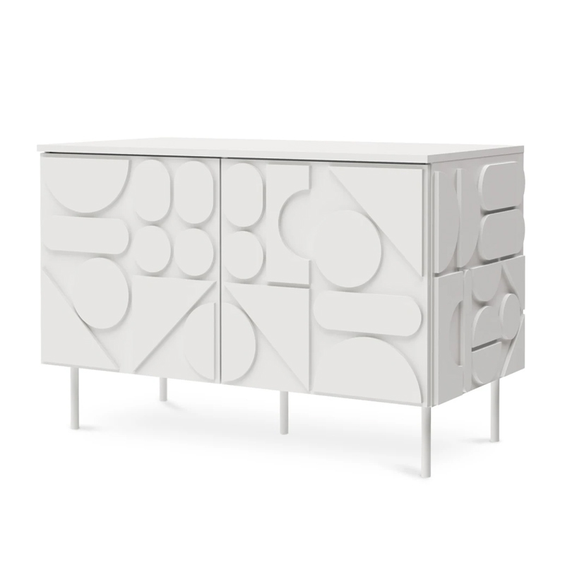Запросить индивидуальное предложениеMilton — линейка корпусной мебели для хранения с динамичным характером. Яркой чертой дизайна являются геометрические фигуры, закреплённые на фасадах и боковых стенках. Они придают изделиям рельефность, оригинальность, выразительность. Серванты, комоды, тумбы напоминают объёмные 3-D головоломки. Архитектура которых строится на комплиментарности контрастов. Колоритный «верх» балансирует на изящных ножках из металла. Фасады без ручек открываются с помощью механизма «нажал-открыл».