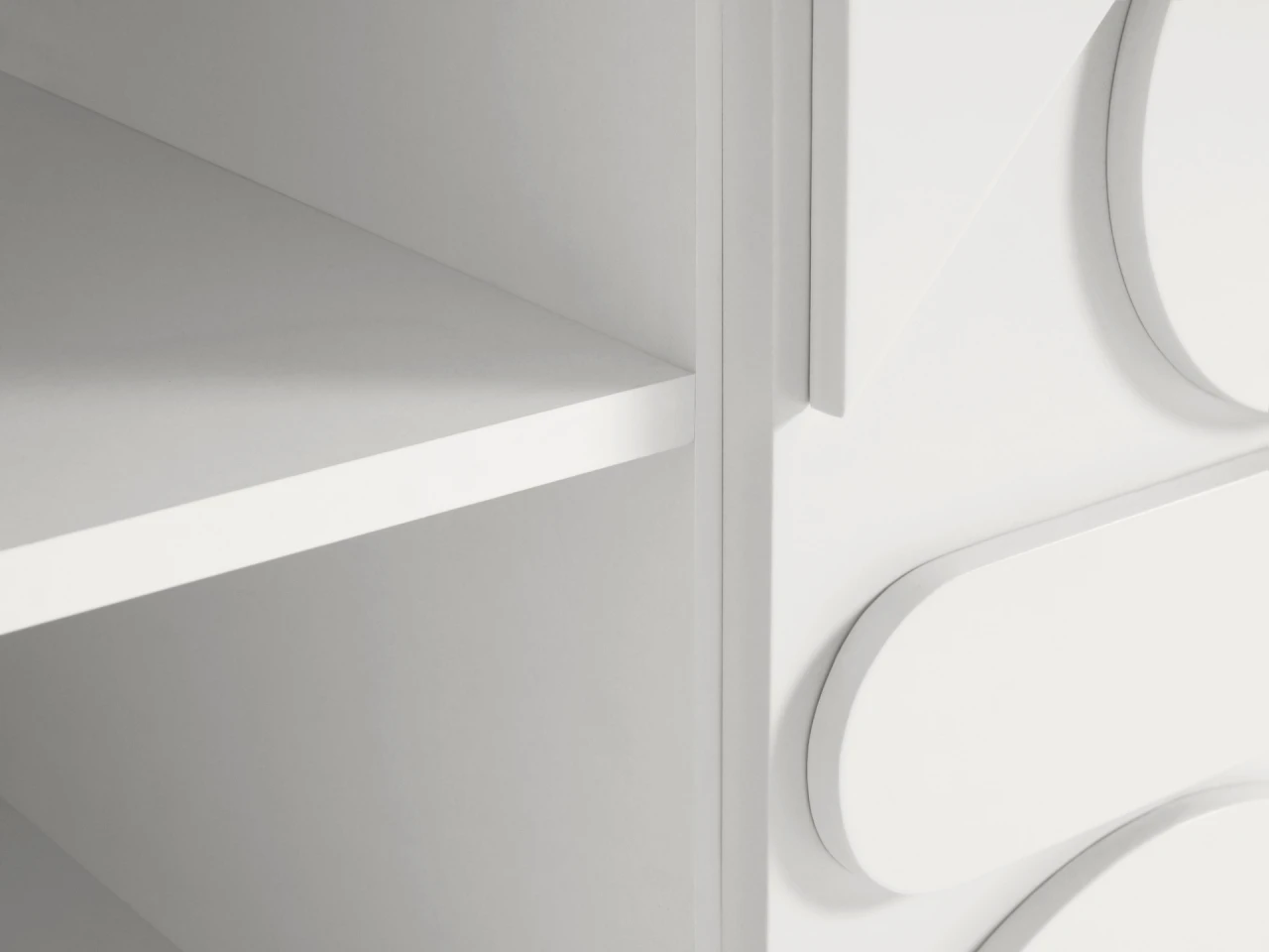 Остальные детали корпусов выполнены из плиты ламинированной толщиной 16 мм, декор Белый гладкий. Кромка ПВХ толщиной 0,4 мм. Задние стенки из плиты ламинированной.