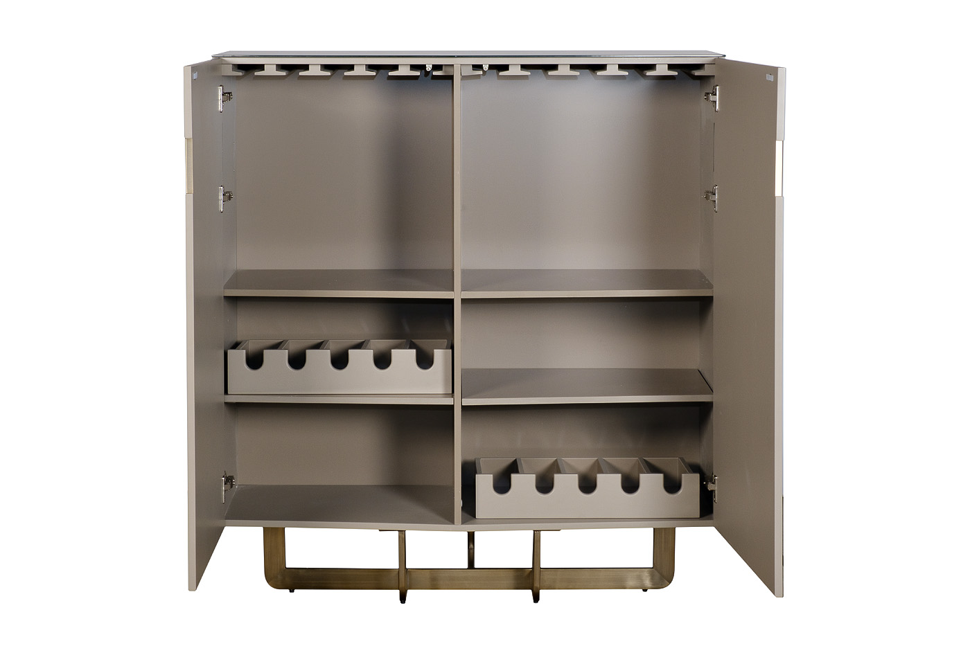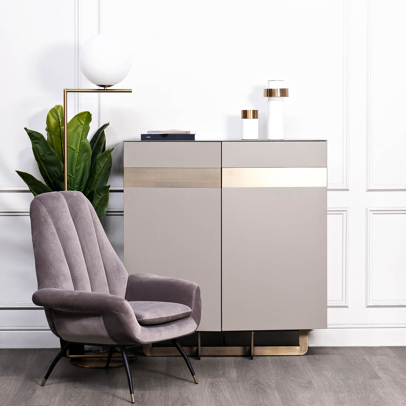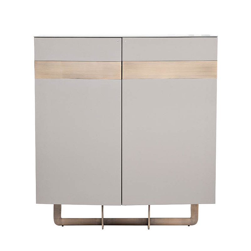 Запросить индивидуальное предложениеCуперсовременный высокий комод из мебельной коллекции Space от ведущего бельгийского дизайнера Тома Де Вульфа воплощает последние тенденции европейской интерьерной моды. Столешница покрыта закаленным 5мм стеклом. Серый лакированный фасад выполнен из высококачественного МДФ и отделан стальными полосами с медным покрытием. В комоде имеется два вместительных отделения с полками и распашными дверцами с механизмом push-to-open. Оригинальная фигурная опора медного цвета заменяет традиционные ножки, обеспечивая устойчивость и безопасность конструкции даже при полной загрузке полок.