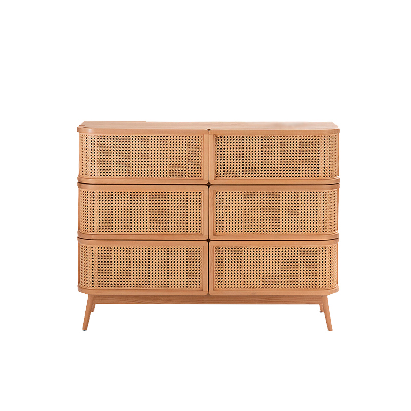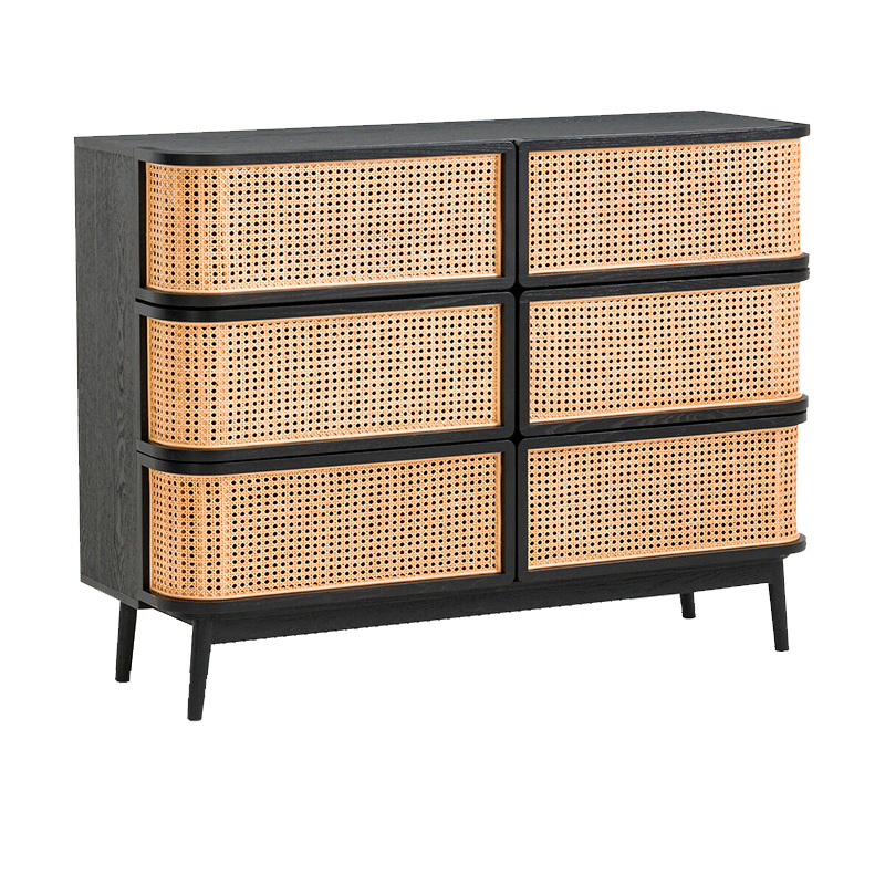 Комод с 6 ящиками из плетеного материала Laora бежевый