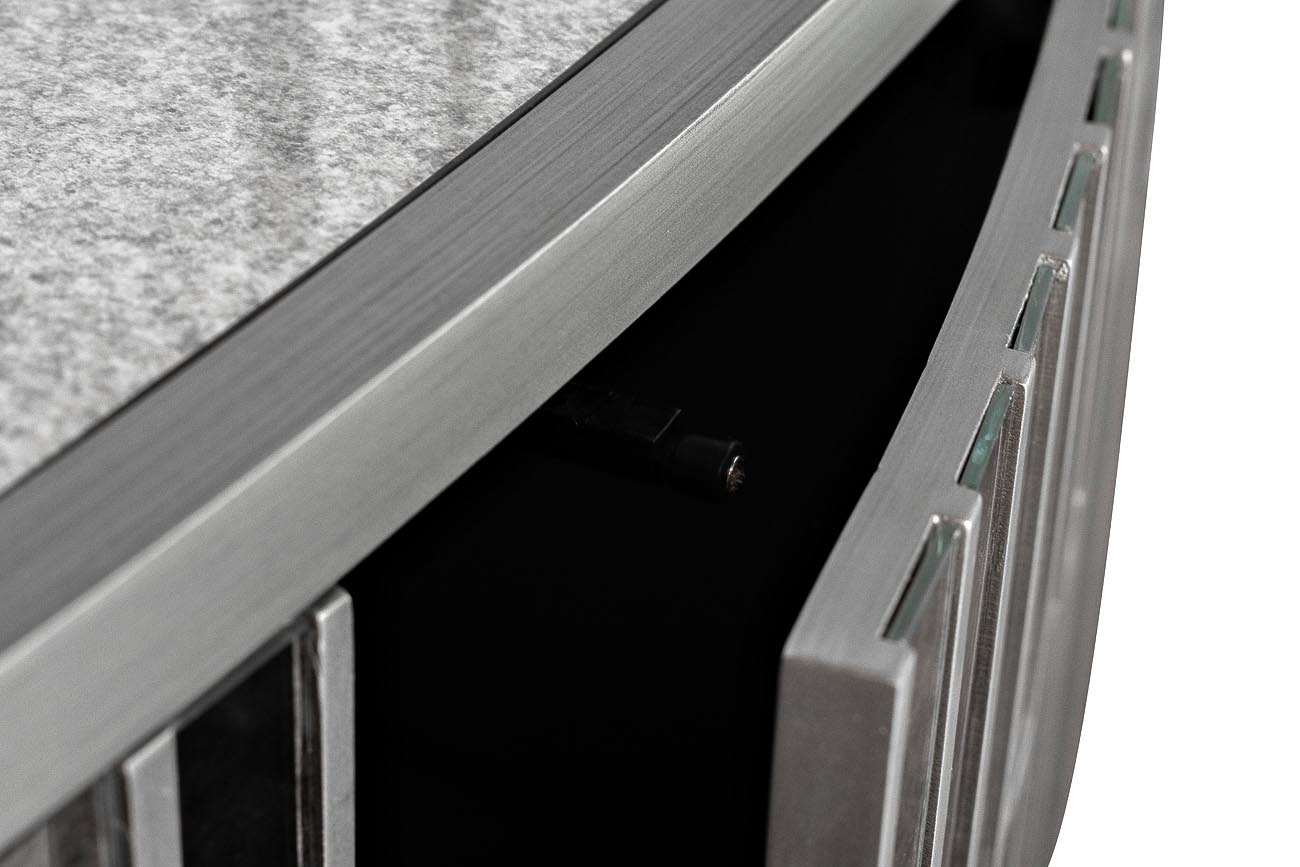 Запросить индивидуальное предложениеНеобычайно изысканный и утонченный комод инкрустирован панелями из искусственно состаренного зеркала цвета silver antique и покрыт зеркальной столешницей того же оттенка. Все детали корпуса из дерева и МДФ серебристого цвета прокрашены и залакированы вручную в несколько слоев, что придает комоду особый шарм и обаяние. Две дверцы с механизмом push-to-open открывают доступ к внутреннему отделению с полкой. Зеркальная столешница может служить красивой подставкой для фоторамок, изысканных безделушек или туалетных принадлежностей. Комод прекрасно впишется даже в устоявшийся интерьер, дополнив меблировку изящной спальной или гостиной комнаты, а также элегантной прихожей. Комод гармонично дополнят тумбочка арт.KFG077 и консоль арт.KFG080 схожего дизайна.