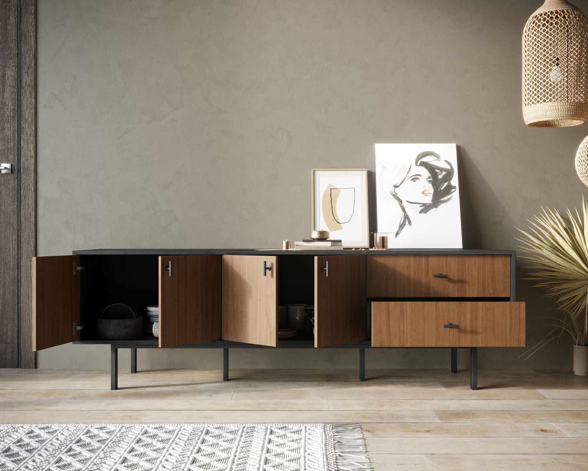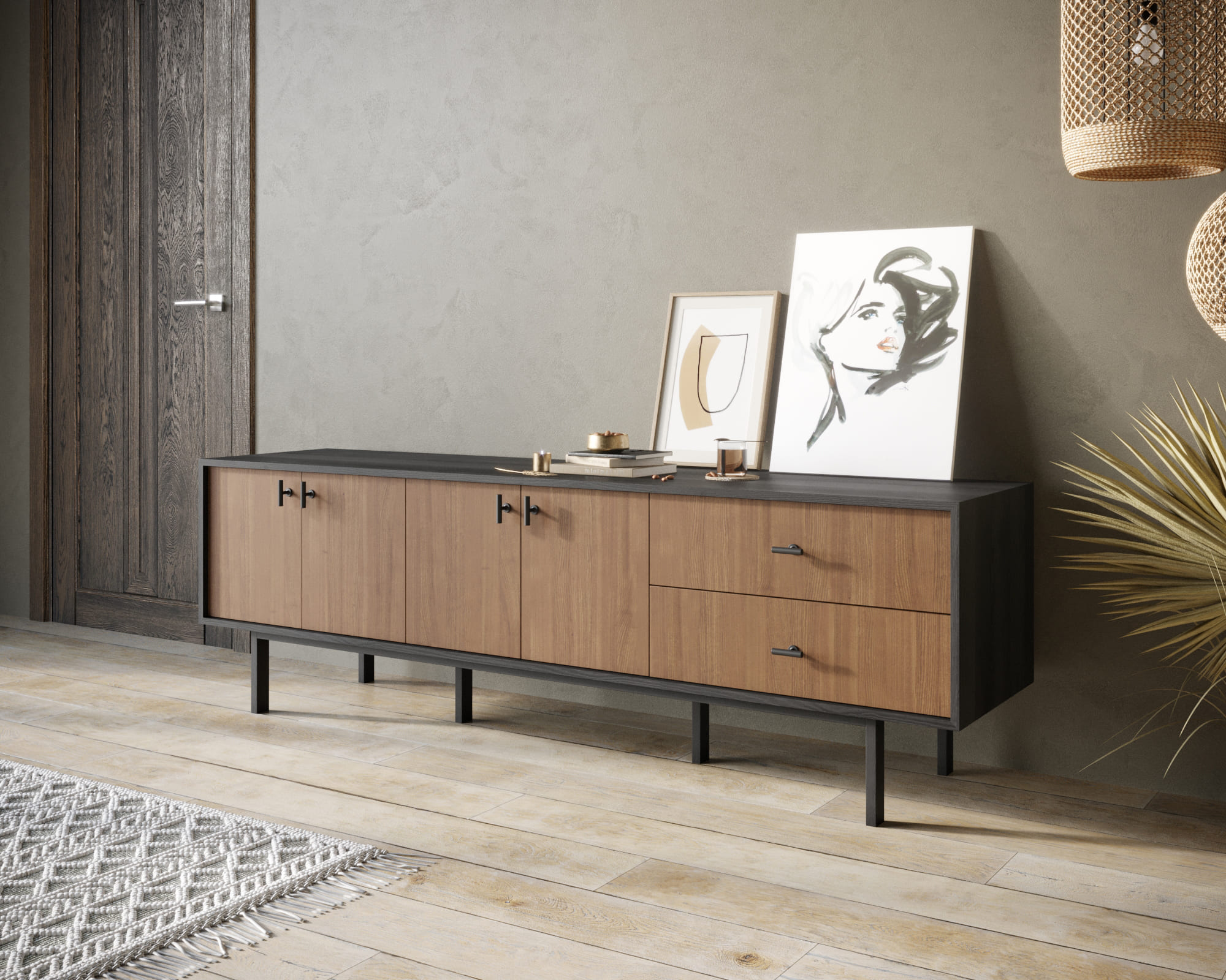 Комод с четырьмя дверками и двумя ящиками "Emerson" арт EM04