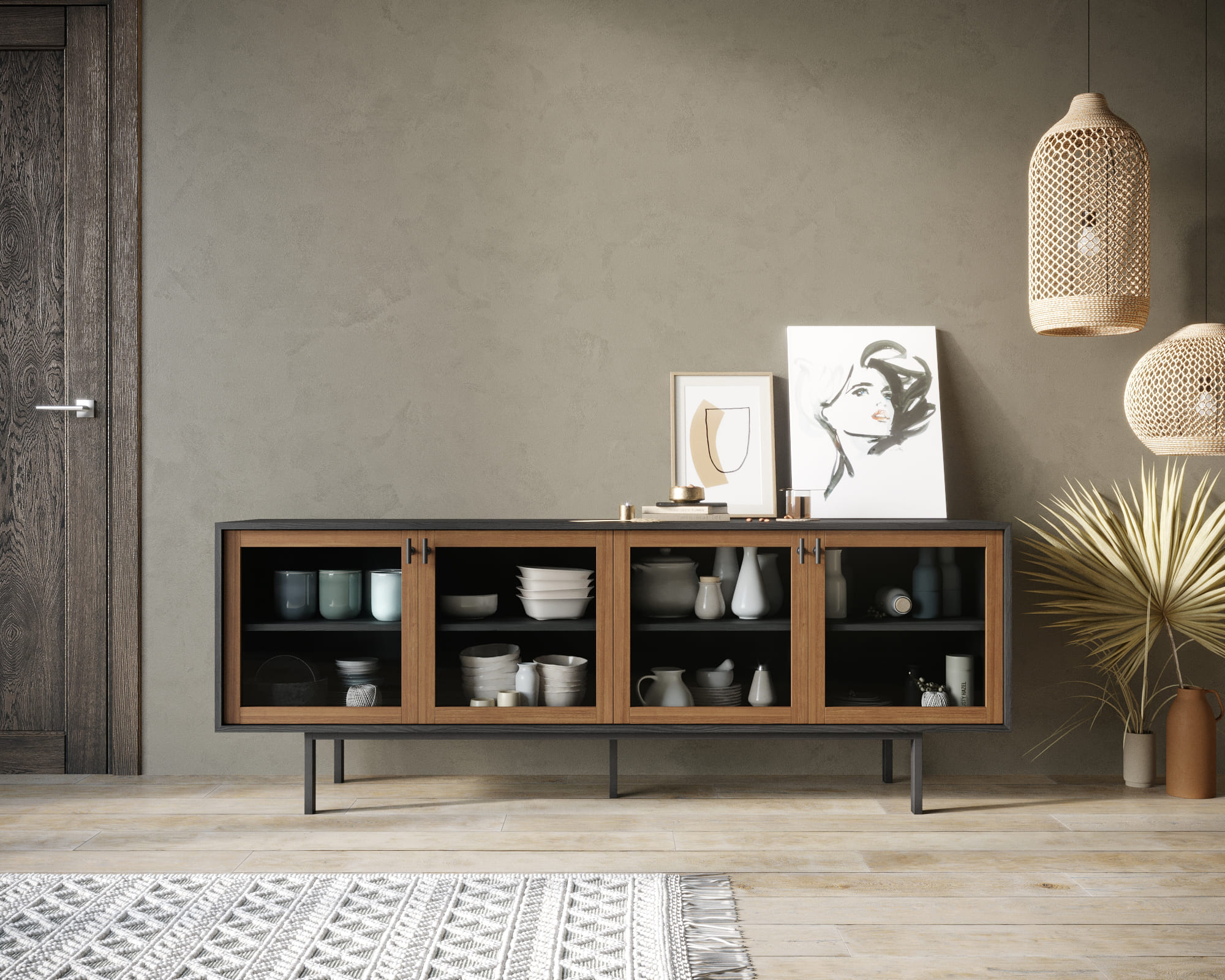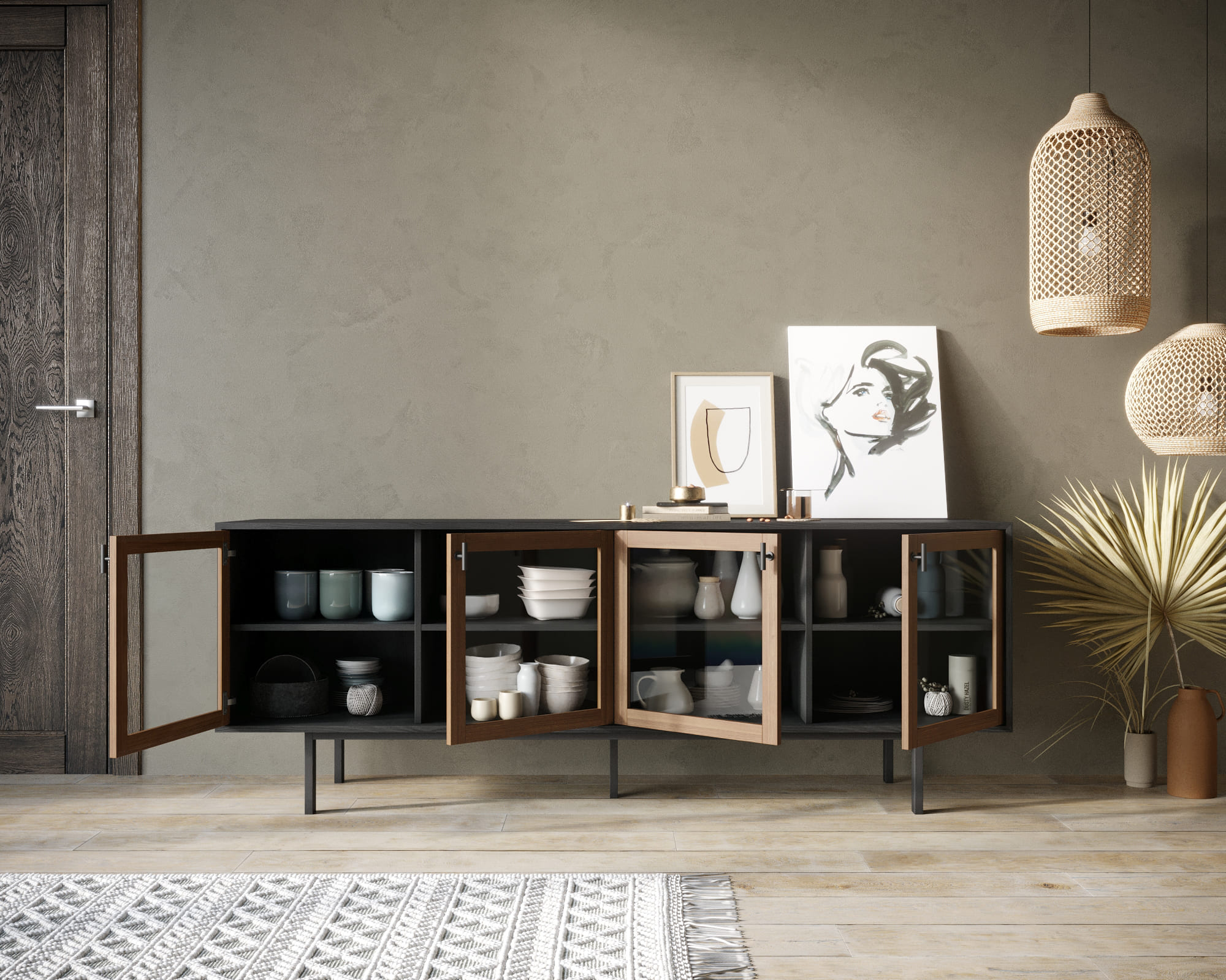 Комод с четыремя стеклянными дверками "Emerson" арт EM12