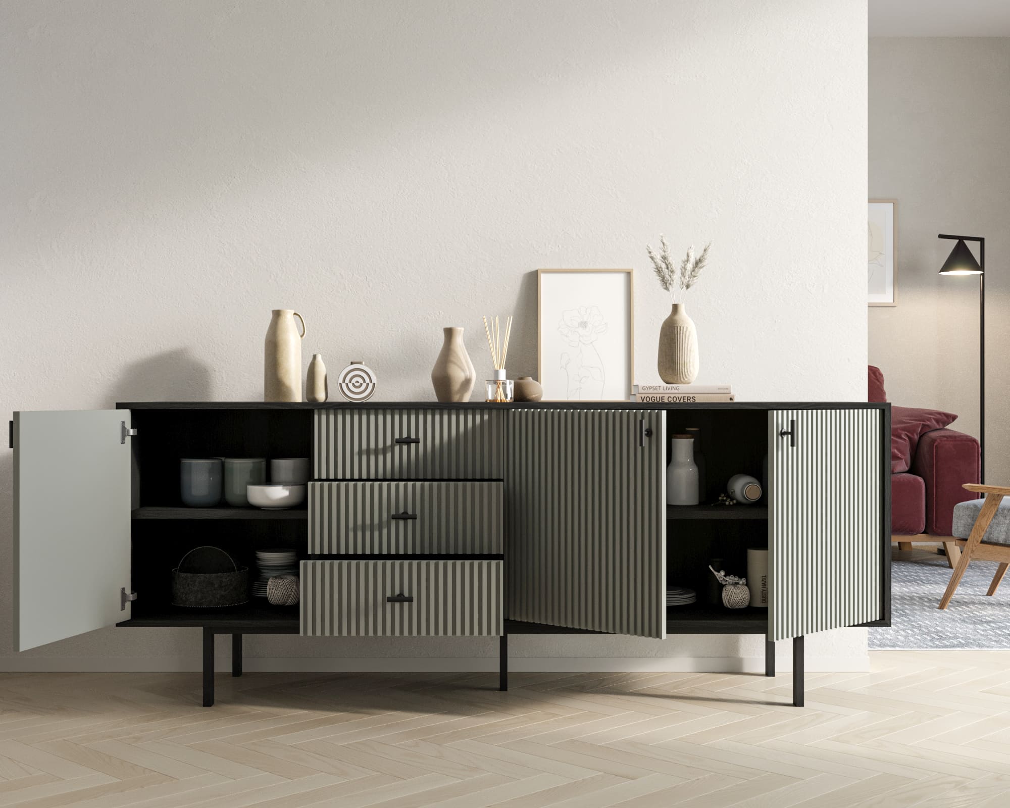 Комод с тремя дверками и тремя ящиками "Emerson" арт EM07/gray/L