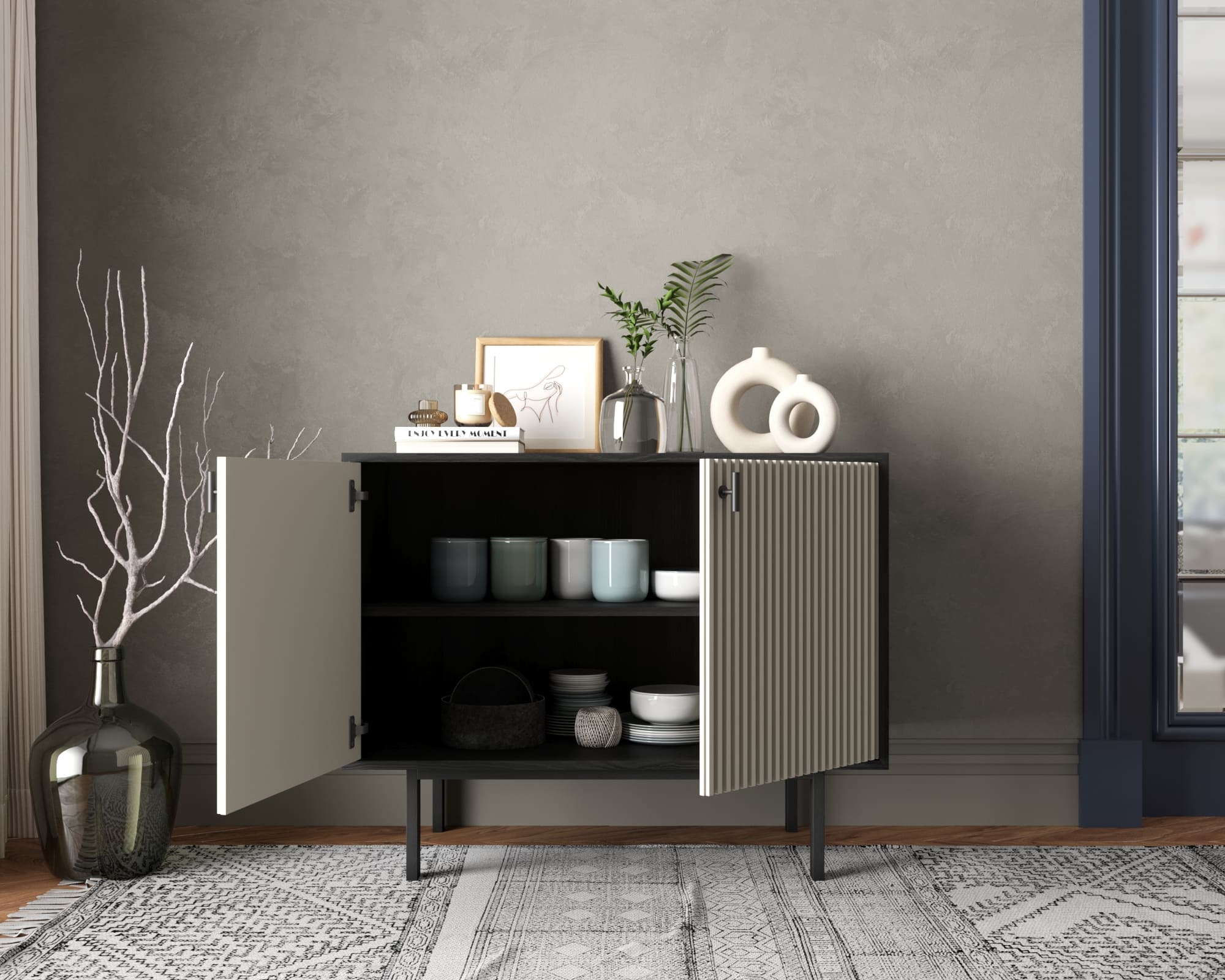 Комод с двумя дверками "Emerson" арт EM02/milky/L