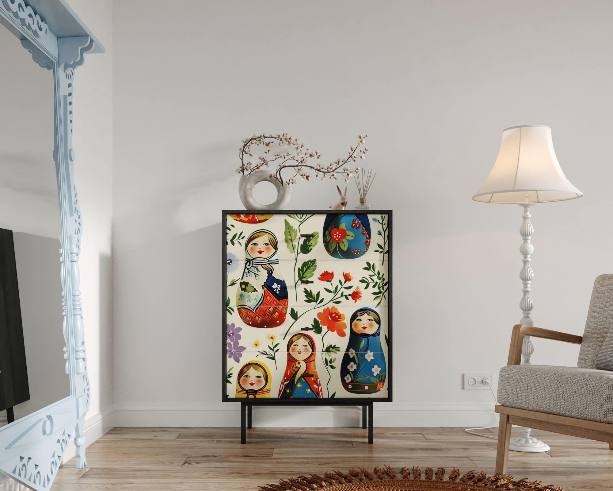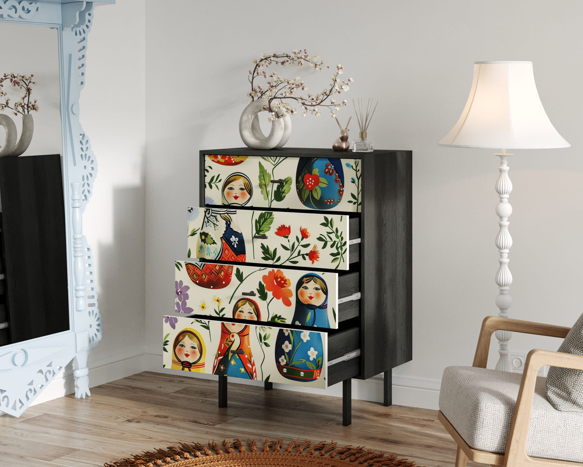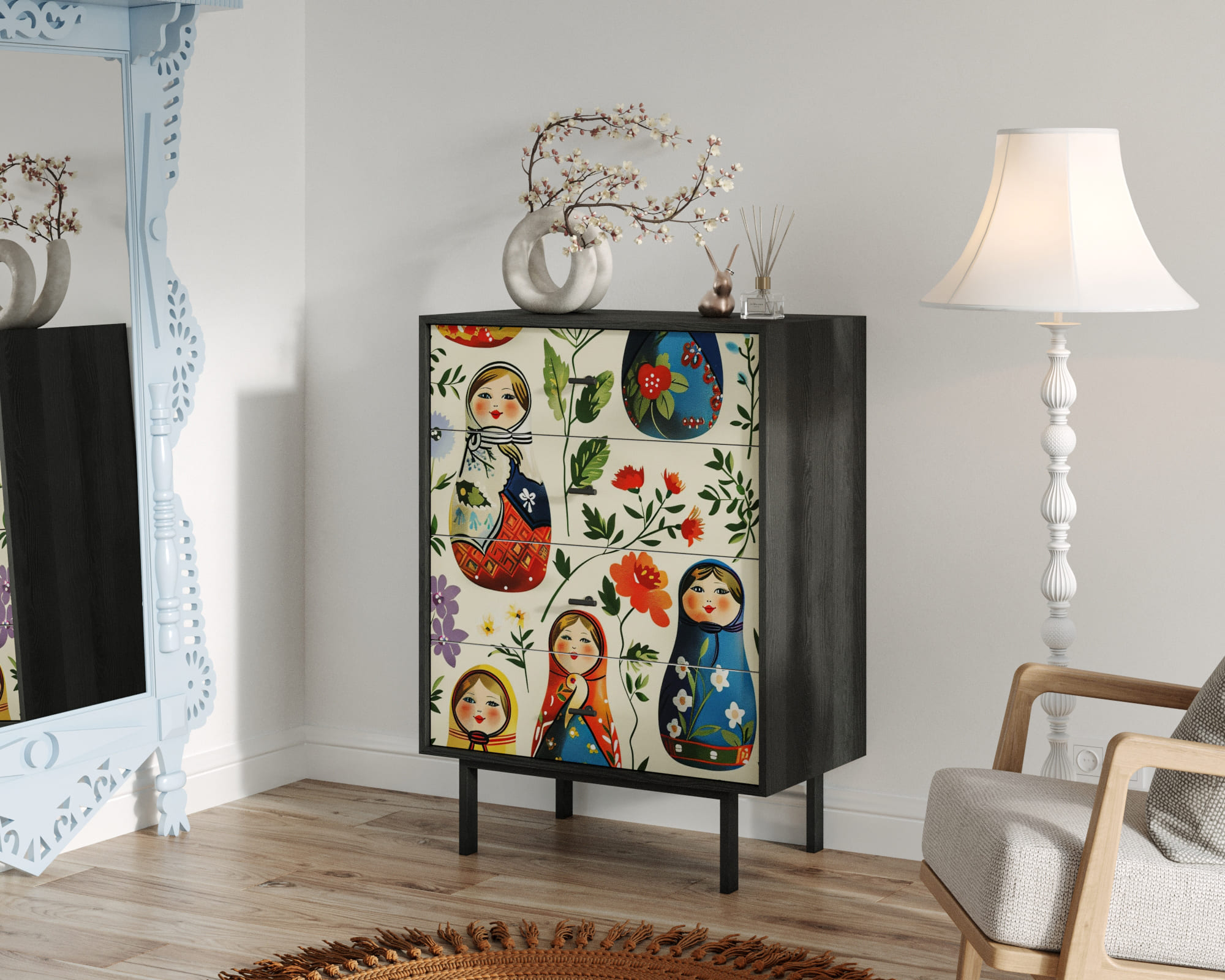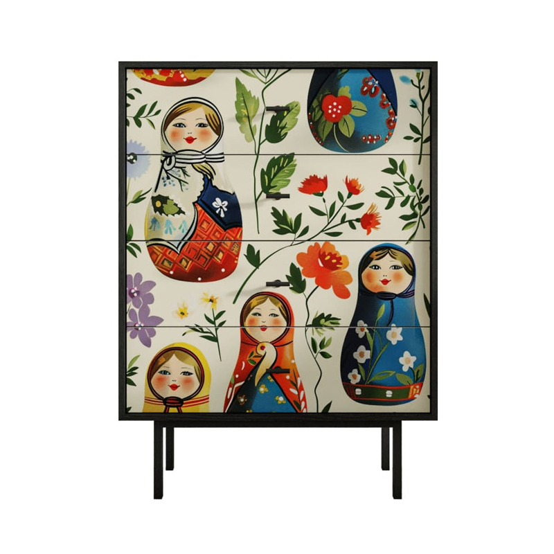 Комод вертикальный с четырьмя ящиками "Emerson" Матрешки арт EM18/Art04