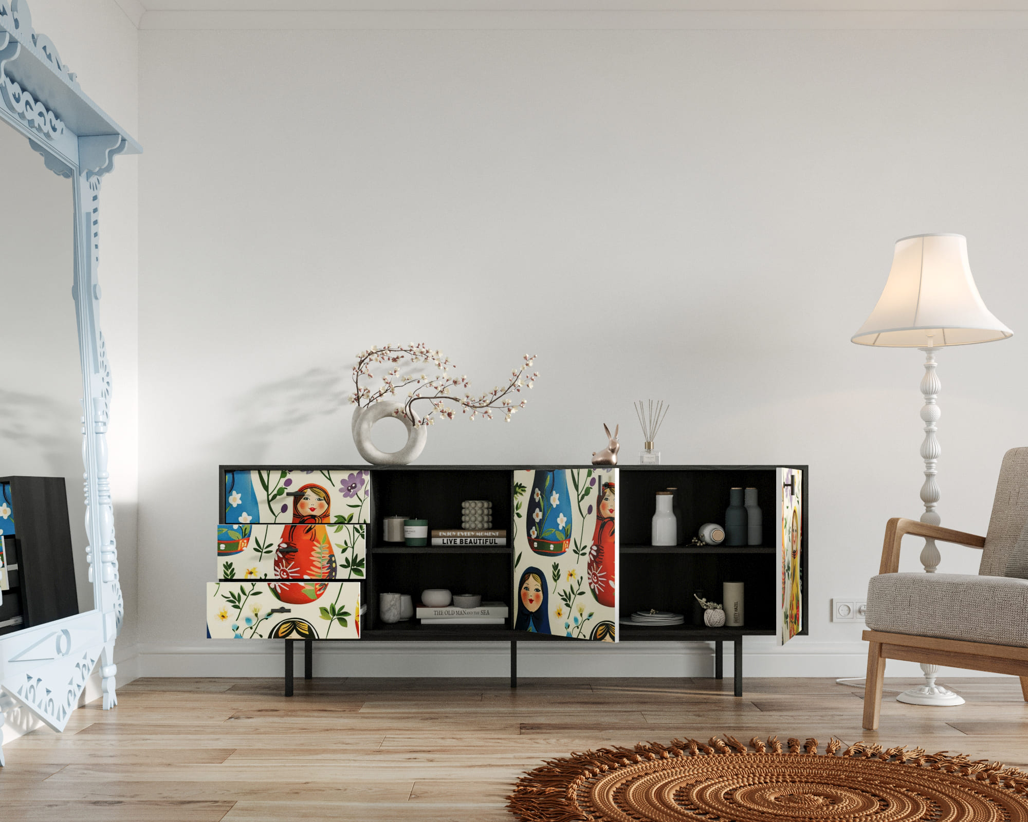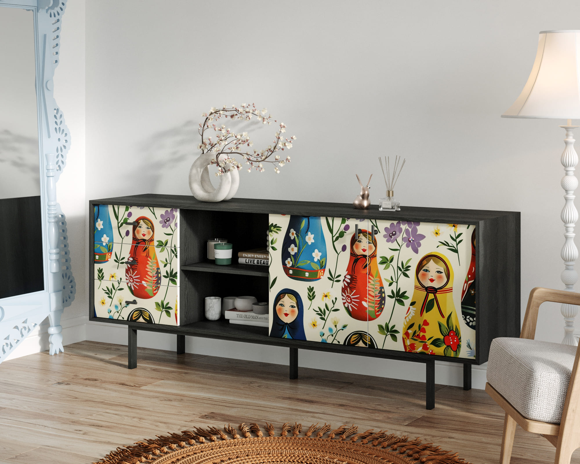 Комод с дверками и нишей "Emerson" Матрешки арт EM15/Art04