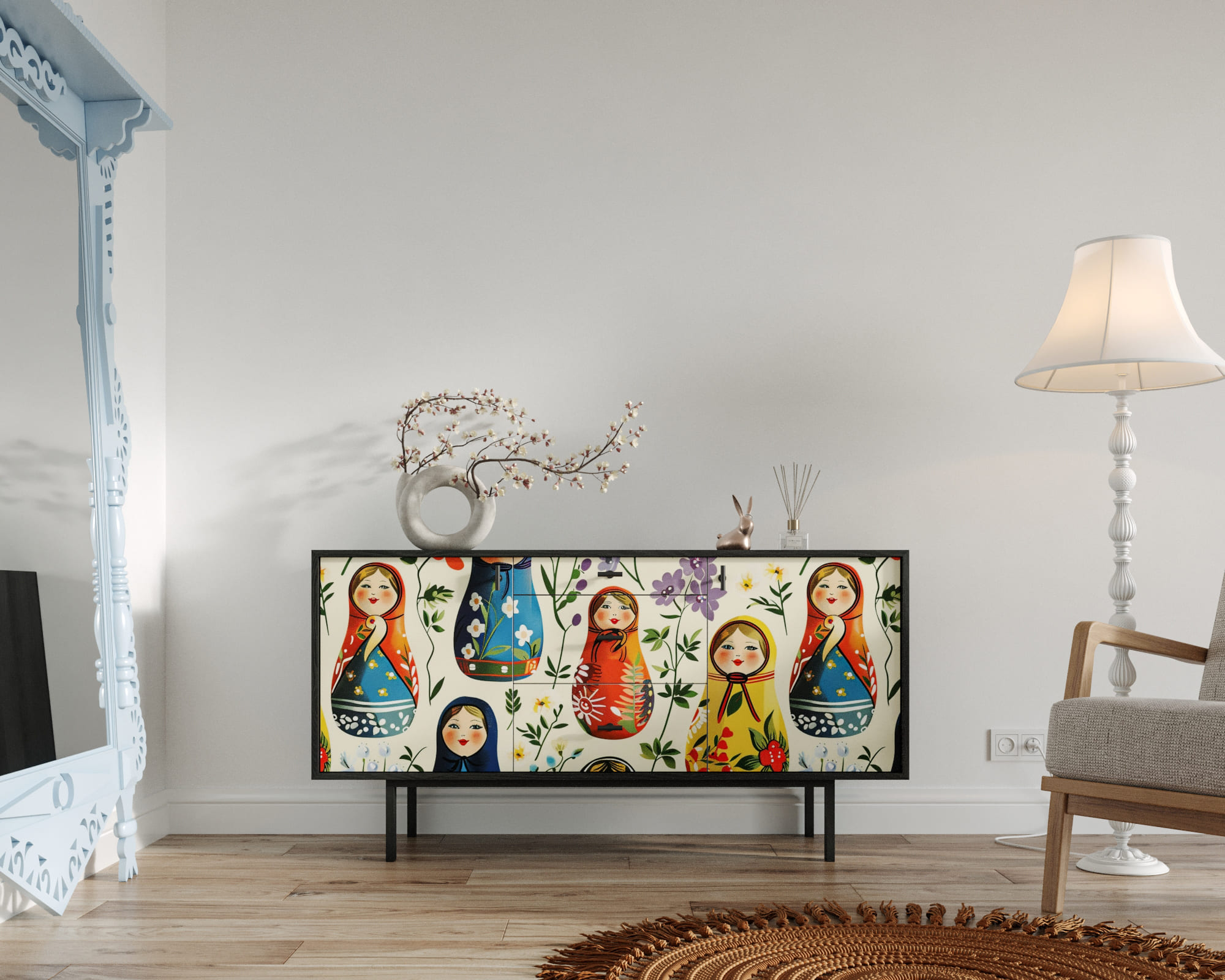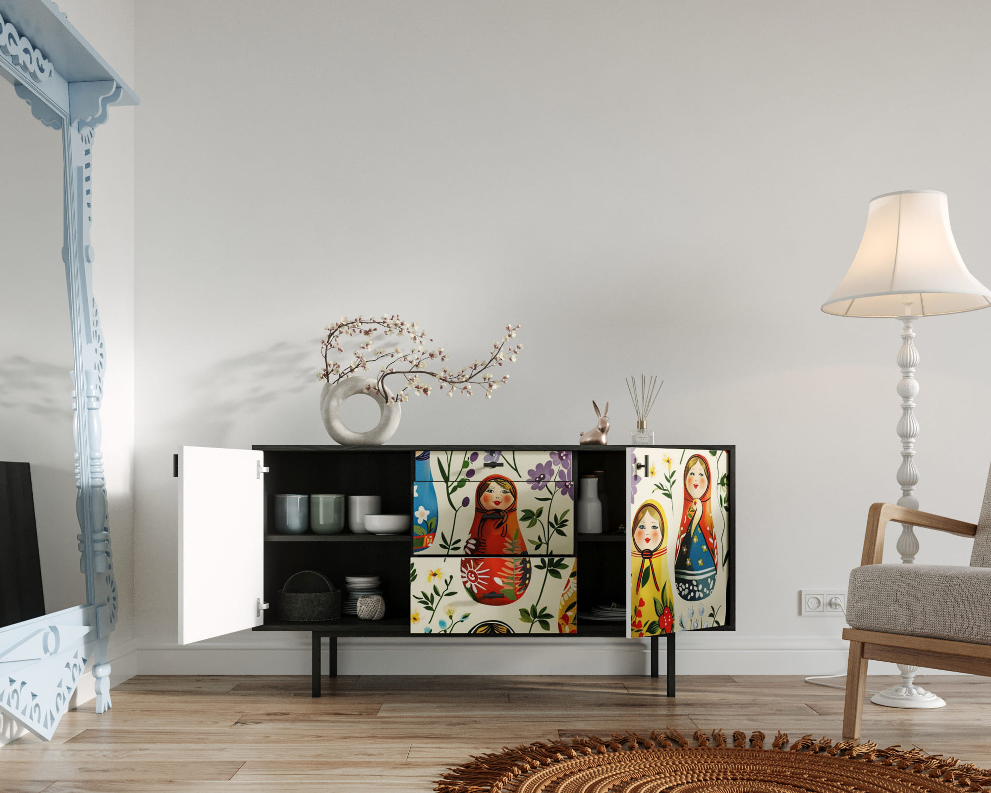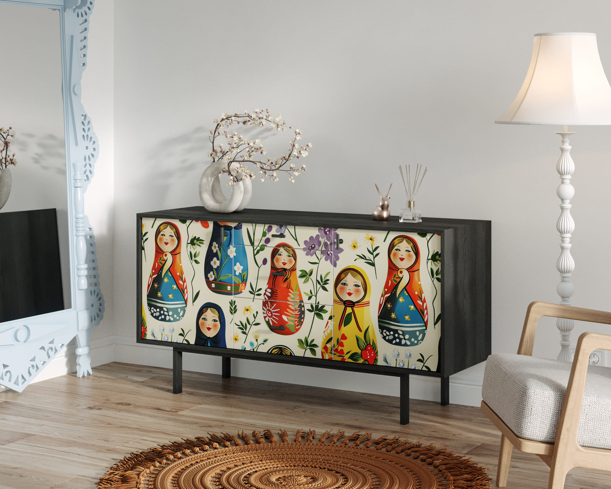 Комод две дверки и три ящика "Emerson" Матрешки арт EM08/Art04