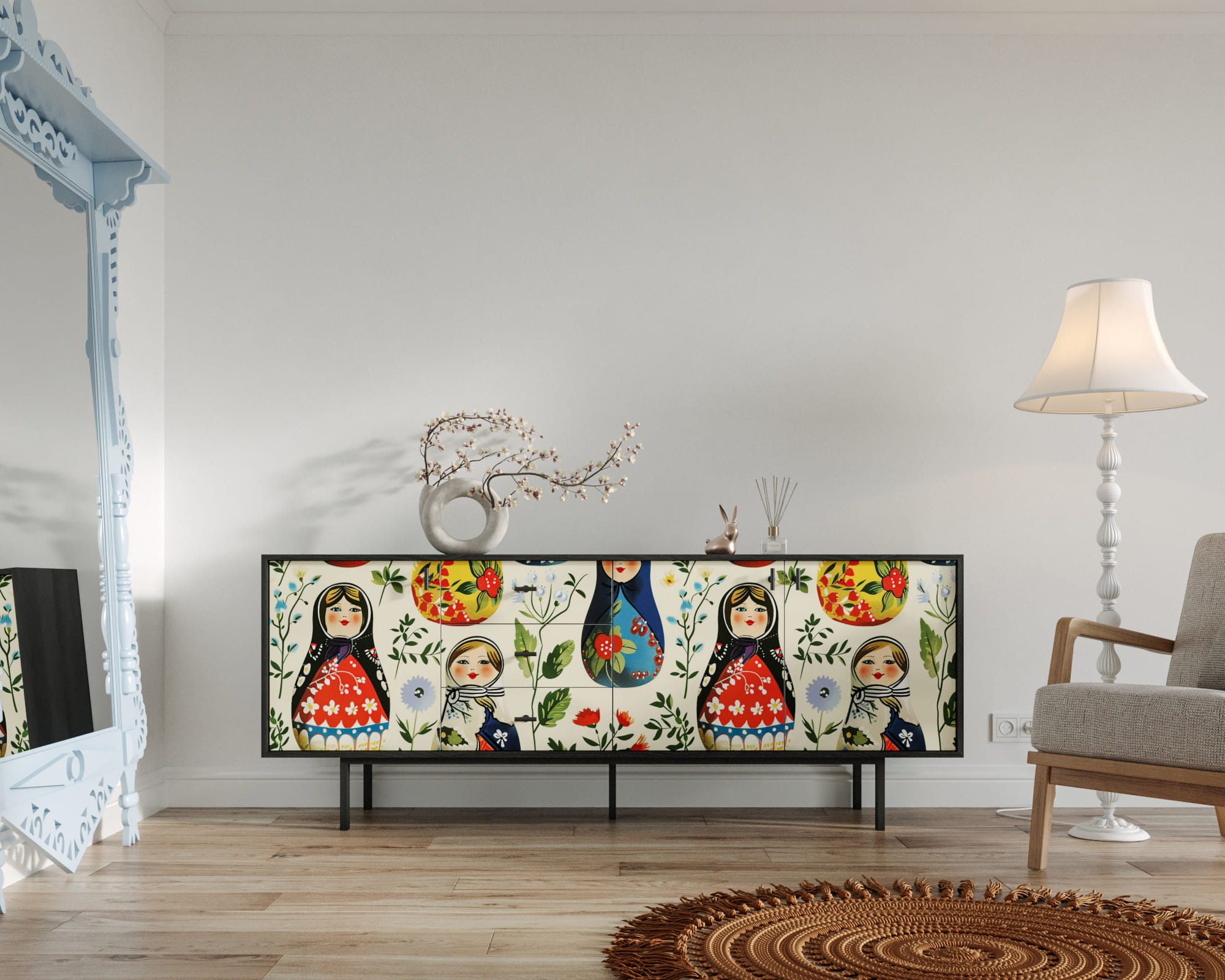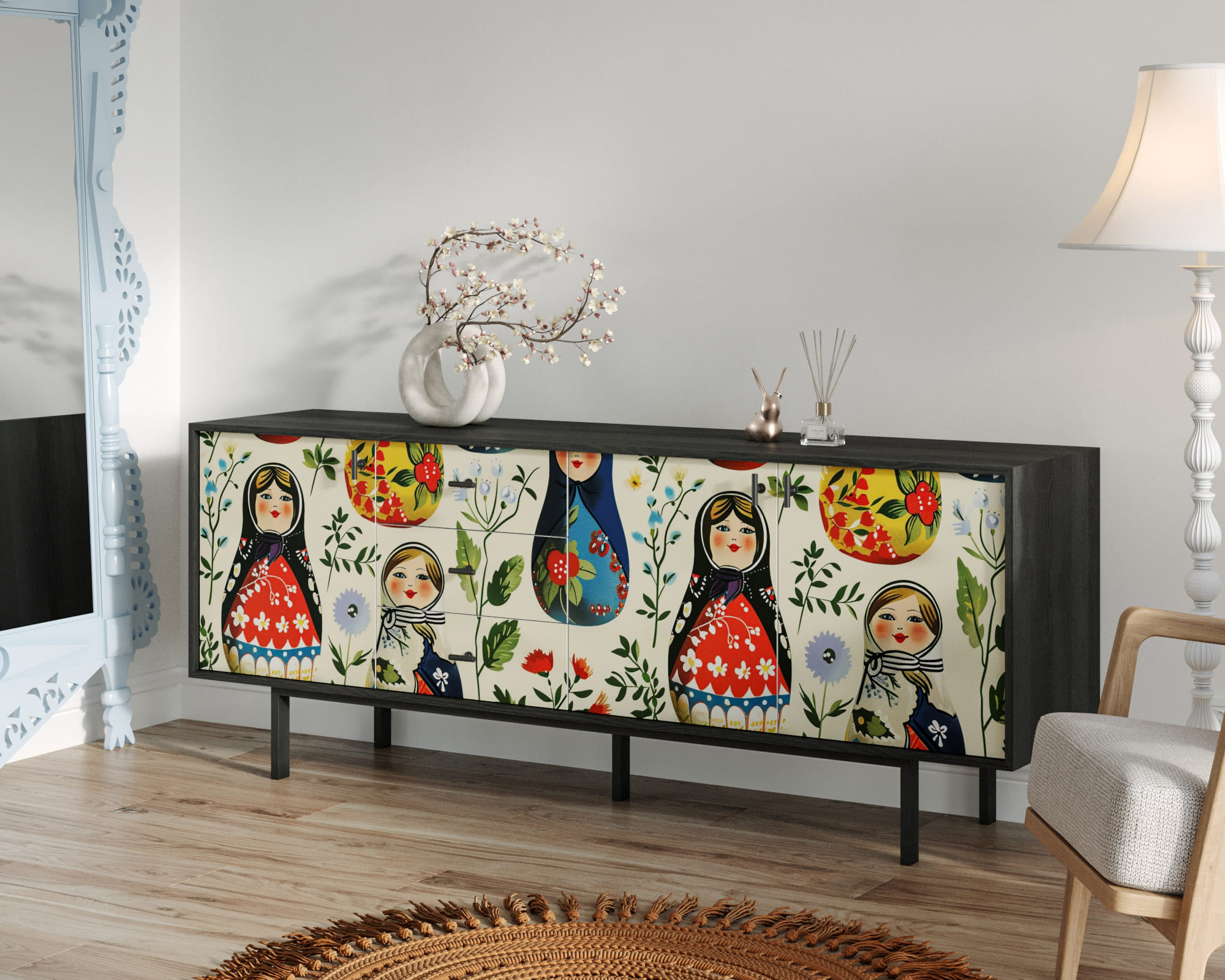 Комод с тремя дверками и тремя ящиками "Emerson" Матрешки арт EM07/Art04