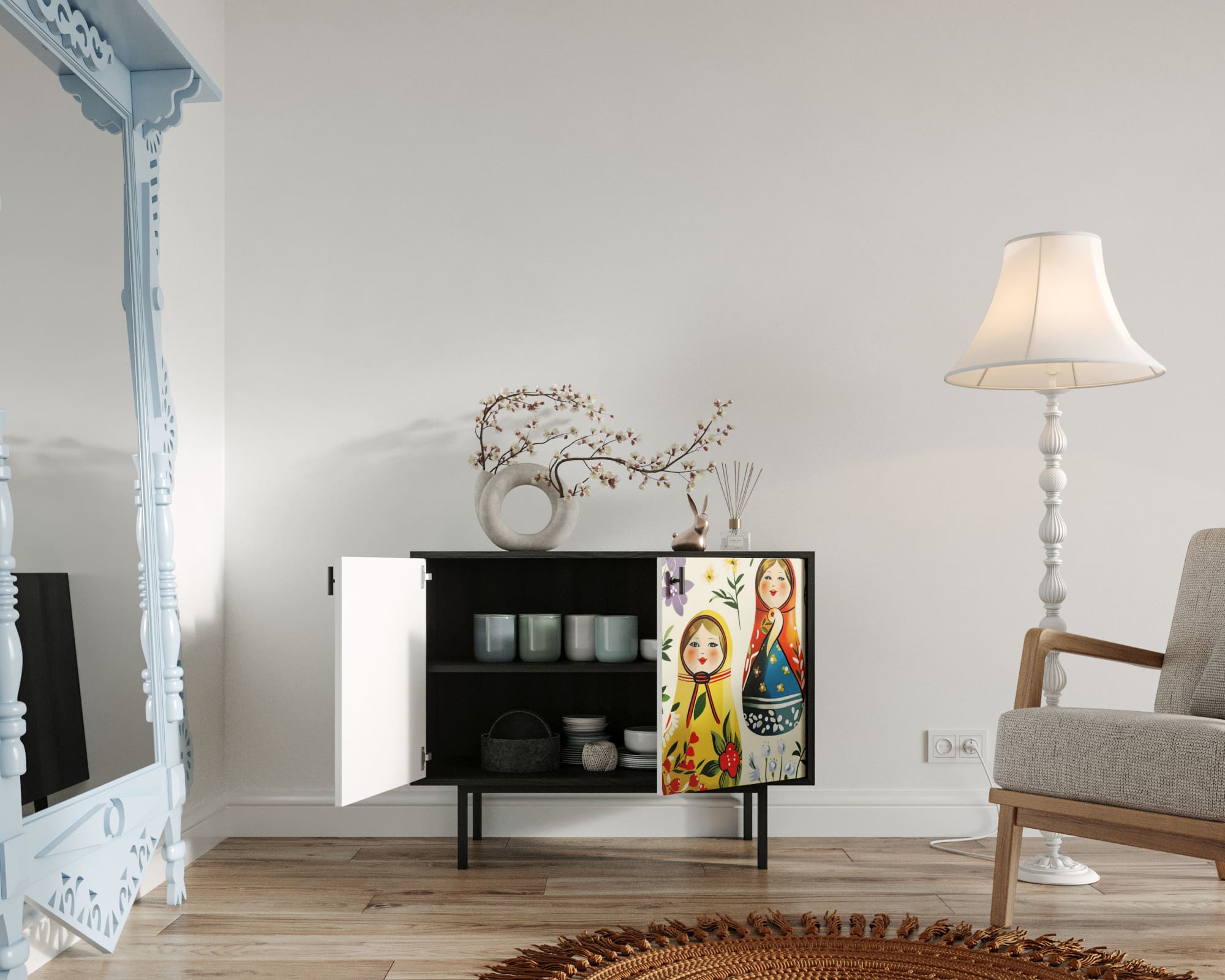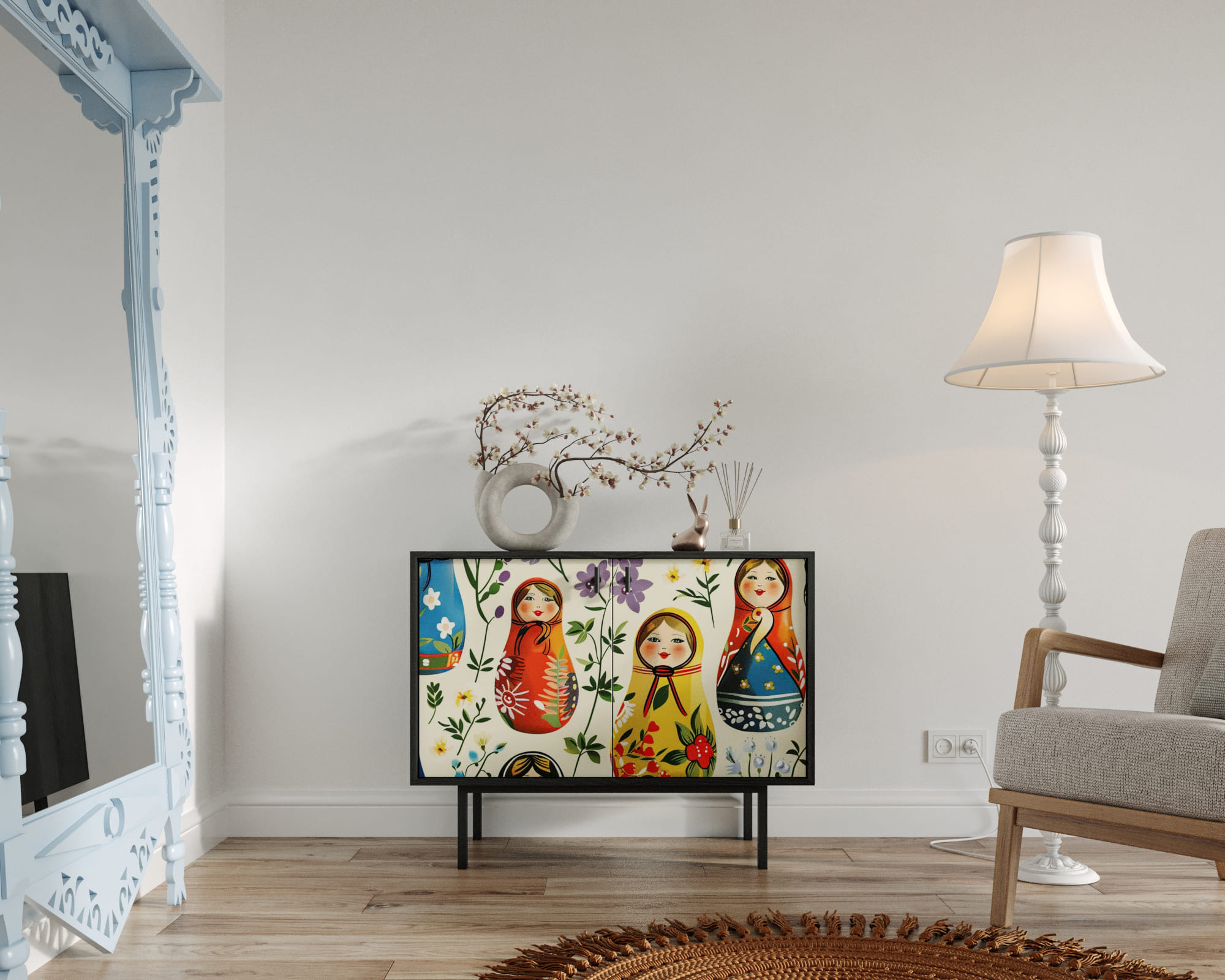 Комод с двумя дверками "Emerson" Матрешки арт EM02/Art04