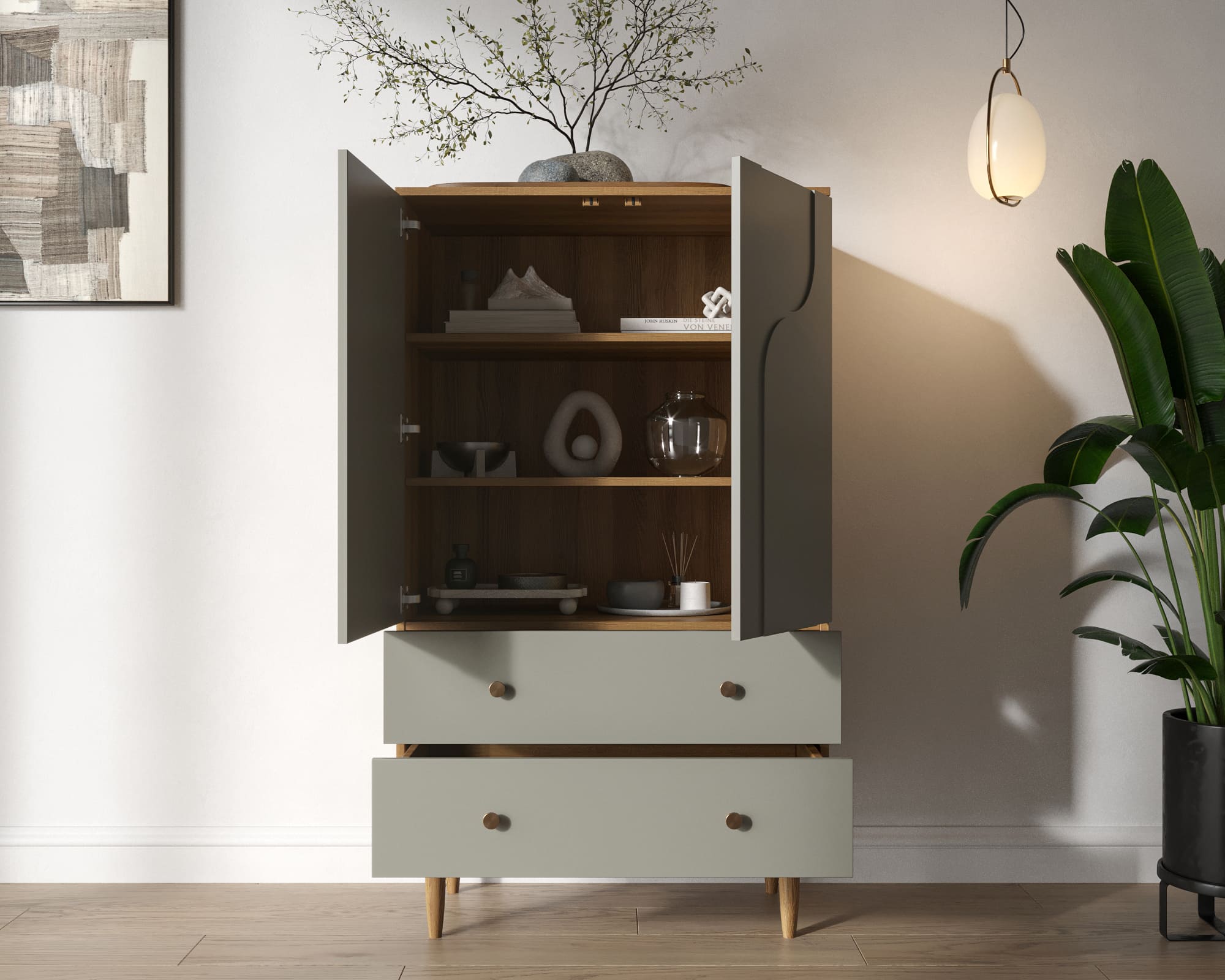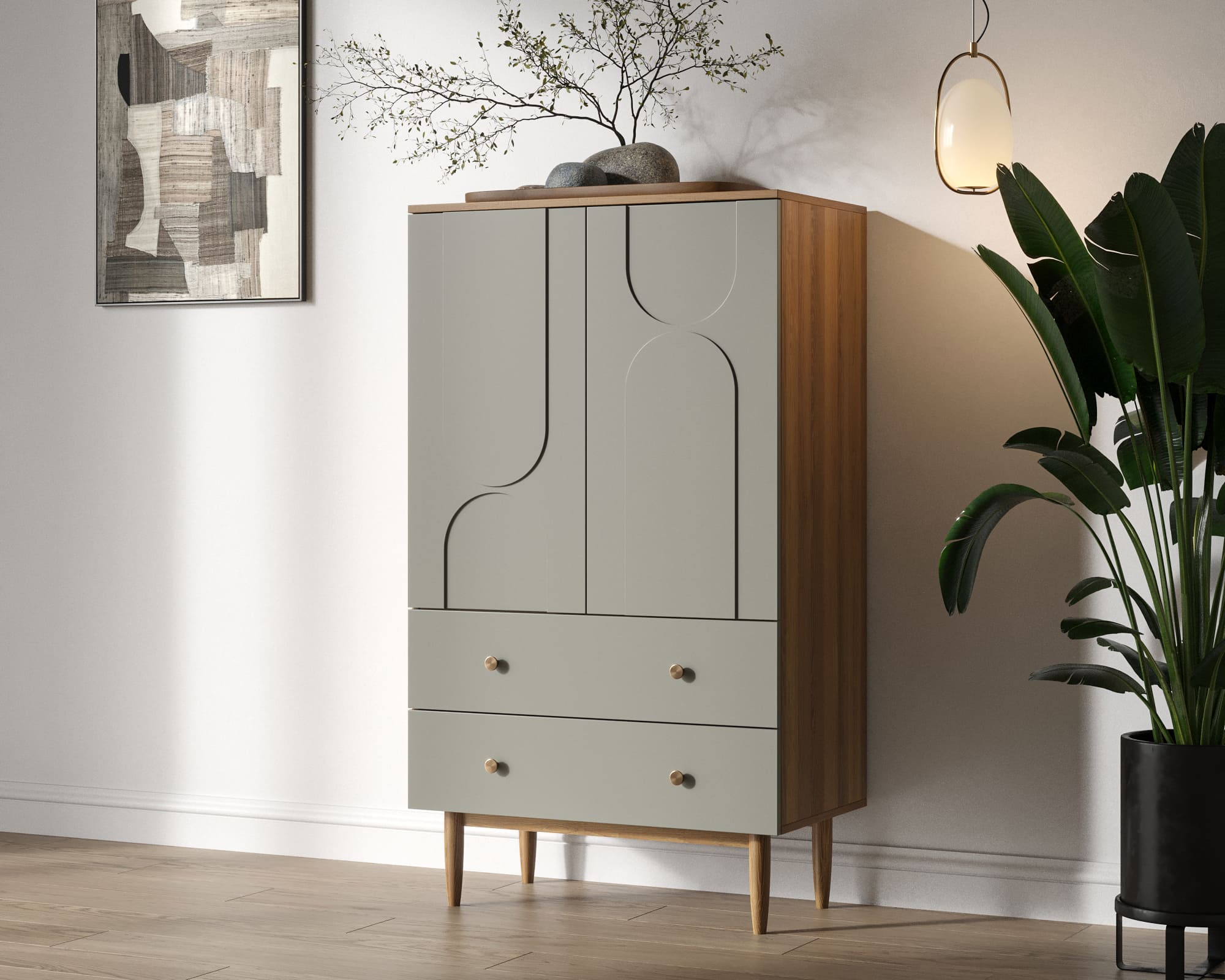Запросить индивидуальное предложениеДанный комод в стиле Джапанди представляет собой гармоничное сочетание японской минималистичности и скандинавской функциональности. Он воплощает в себе принципы простоты, природных материалов и элегантной практичности. Его геометрия тщательно продумана, что делает его визуально легким и воздушным, придавая пространству ощущение спокойствия и гармонии.