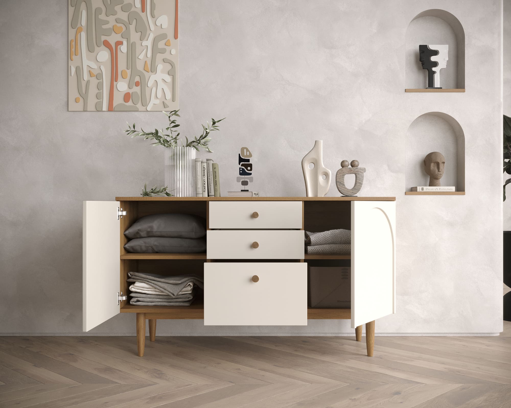 Запросить индивидуальное предложениеДанный комод в стиле Джапанди представляет собой гармоничное сочетание японской минималистичности и скандинавской функциональности. Он воплощает в себе принципы простоты, природных материалов и элегантной практичности. Его геометрия тщательно продумана, что делает его визуально легким и воздушным, придавая пространству ощущение спокойствия и гармонии.
