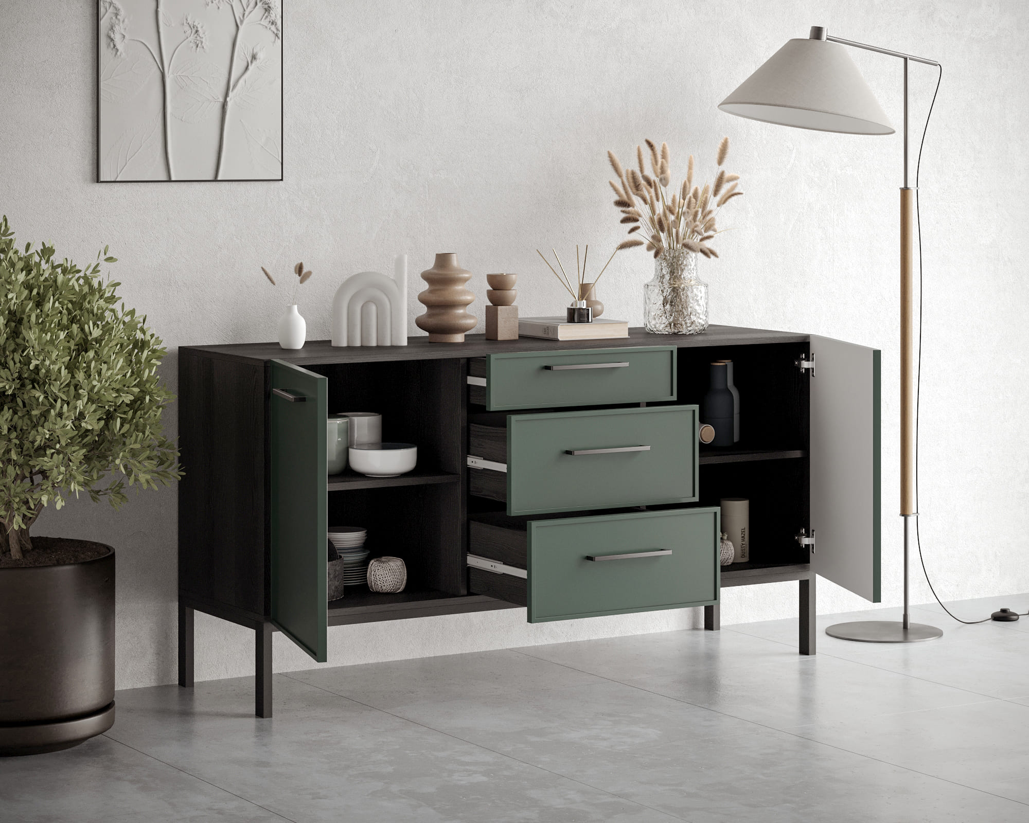 Комод Nicole станет не только идеальным акцентом в вашем интерьере, добавляя нотку современного стиля с ярко выраженными нордическими чертами, но и и важным элементом декора. Благодаря своему дизайну он гармонично сочетается с любым стилем оформления, делая его универсальным решением для вашего дома и визуально расширяя пространство, придавая помещению воздушность.