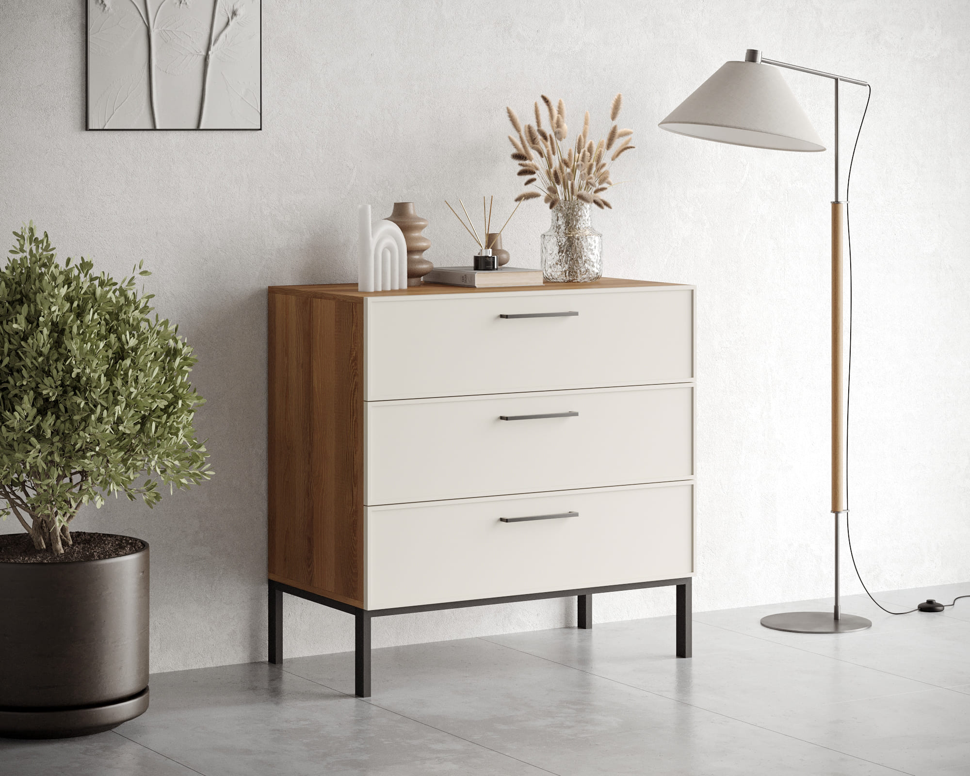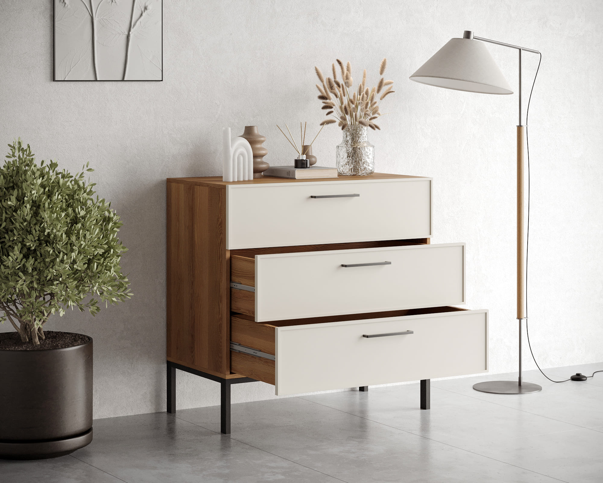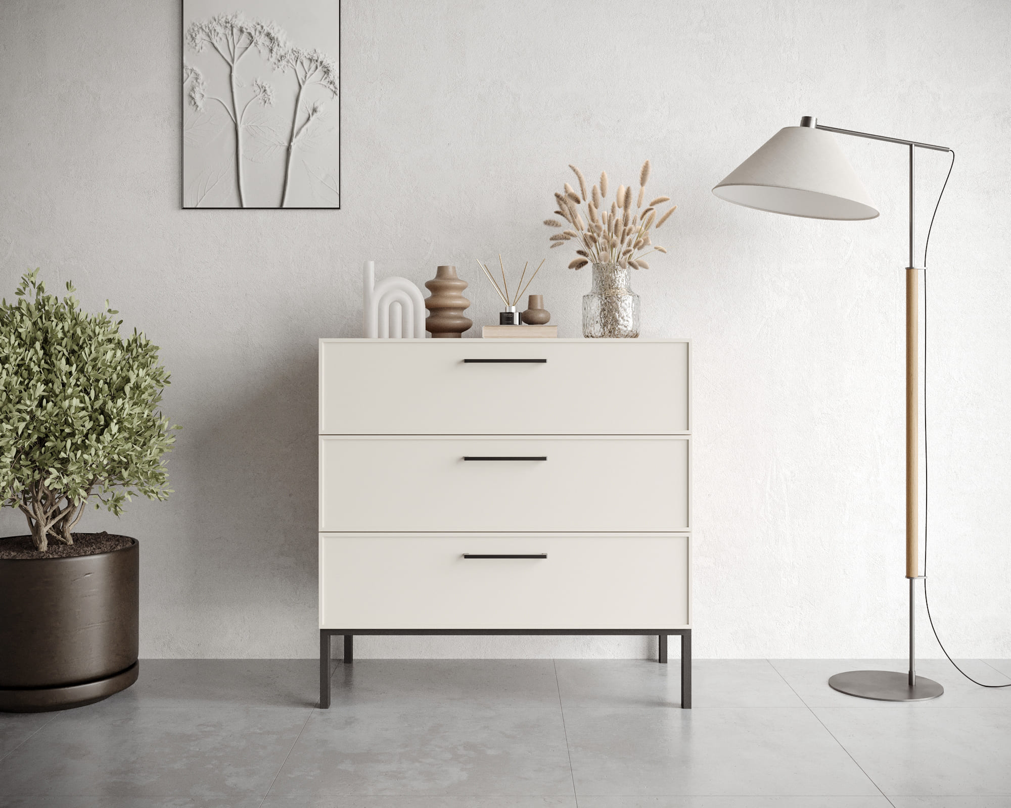 Комод Nicole станет не только идеальным акцентом в вашем интерьере, добавляя нотку современного стиля с ярко выраженными нордическими чертами, но и и важным элементом декора. Благодаря своему дизайну он гармонично сочетается с любым стилем оформления, делая его универсальным решением для вашего дома и визуально расширяя пространство, придавая помещению воздушность.