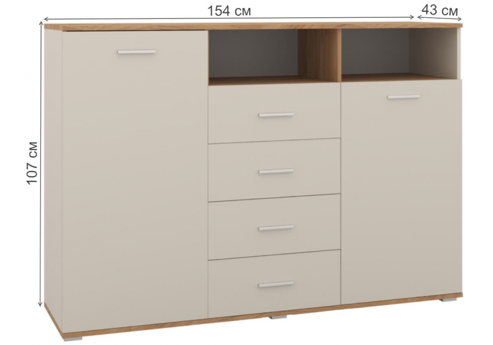 Комод Кассандра 154 дуб крафт золотой / кашемир