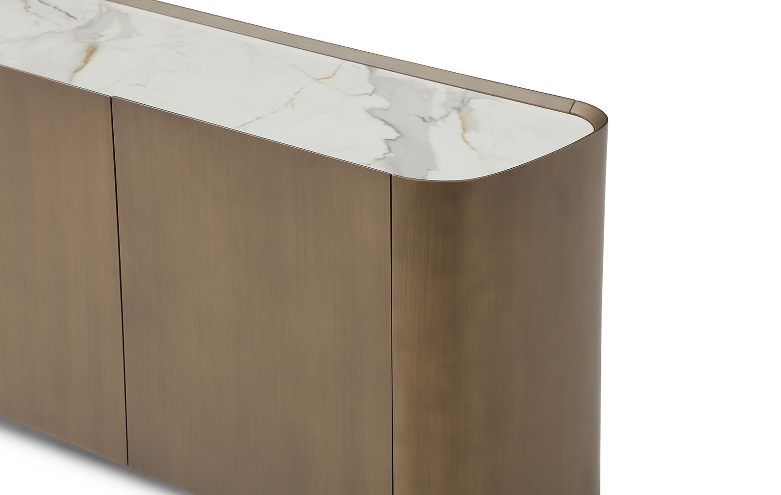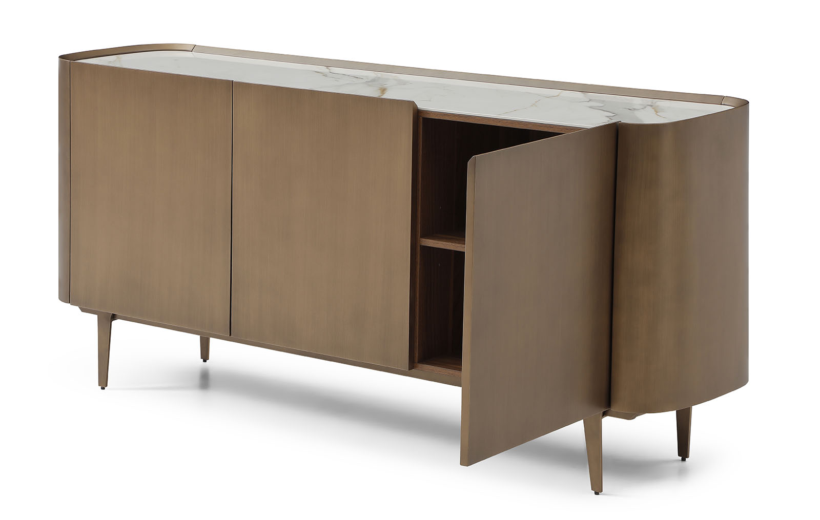 Буфет Sardinia (Сардиния) - это сдержанная элегантность и современная интерпретация классических форм. Модель привлекает внимание лаконичными фасадами, выполненными из МДФ и окрашенными в деликатный оттенок матовой бронзы.