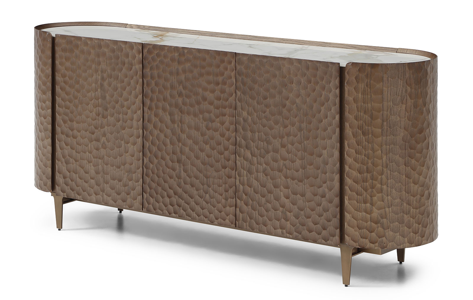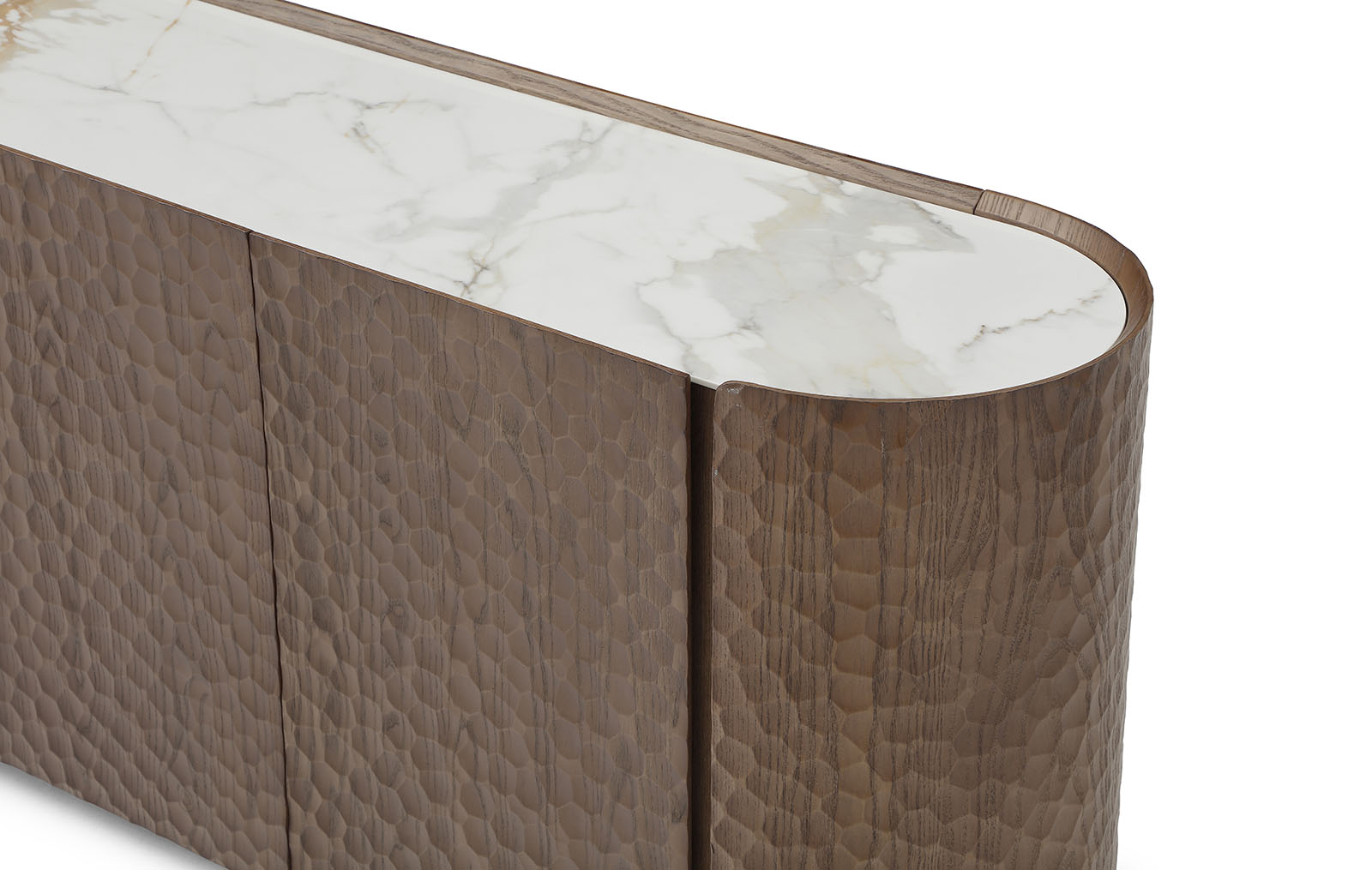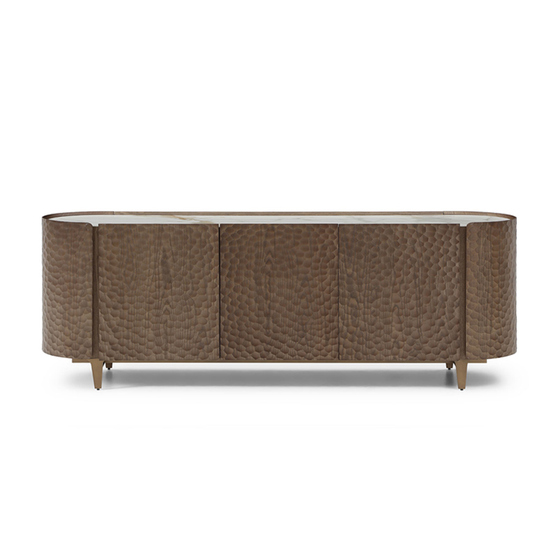 Буфет Sicilia (Сицилия) - выразительный предмет интерьера, в котором сочетаются декоративный дизайн и современные технологии. Его главная особенность - фасады с объемной текстурой, созданной с помощью ЧПУ-обработки. Рельефный рисунок напоминает ручную чеканку и придаёт поверхности глубину, игру света и тактильную привлекательность.