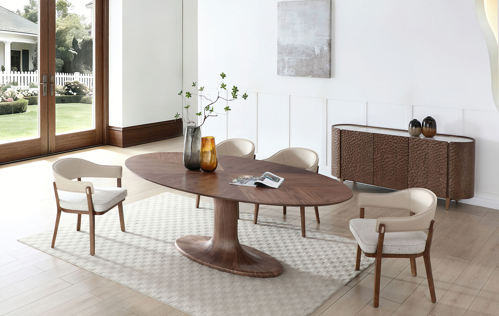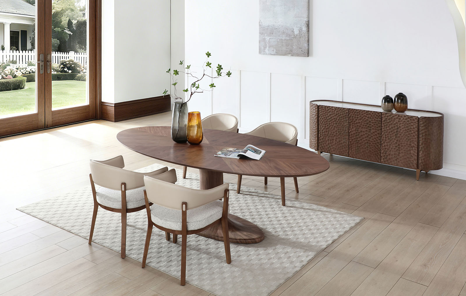 Закруглённый силуэт смягчает геометрию пространства и делает буфет визуально лёгким, несмотря на внушительную ширину 180 см. Такая форма не только эстетична, но и безопасна - без острых углов, что особенно важно для жилых интерьеров.