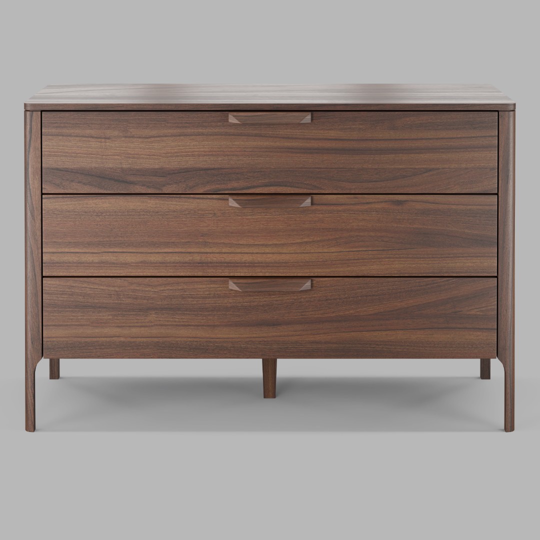 На фото в другой отделке. Комод, изготовлен из высококачественного, шпонированного МДФ высокой плотности. Комод оснащен тремя выдвижными ящиками. Все ящика снабжены направляющими системы soft-close. Уникальная система последнего поколения добавляет невероятную плавность открывания/закрывания.
