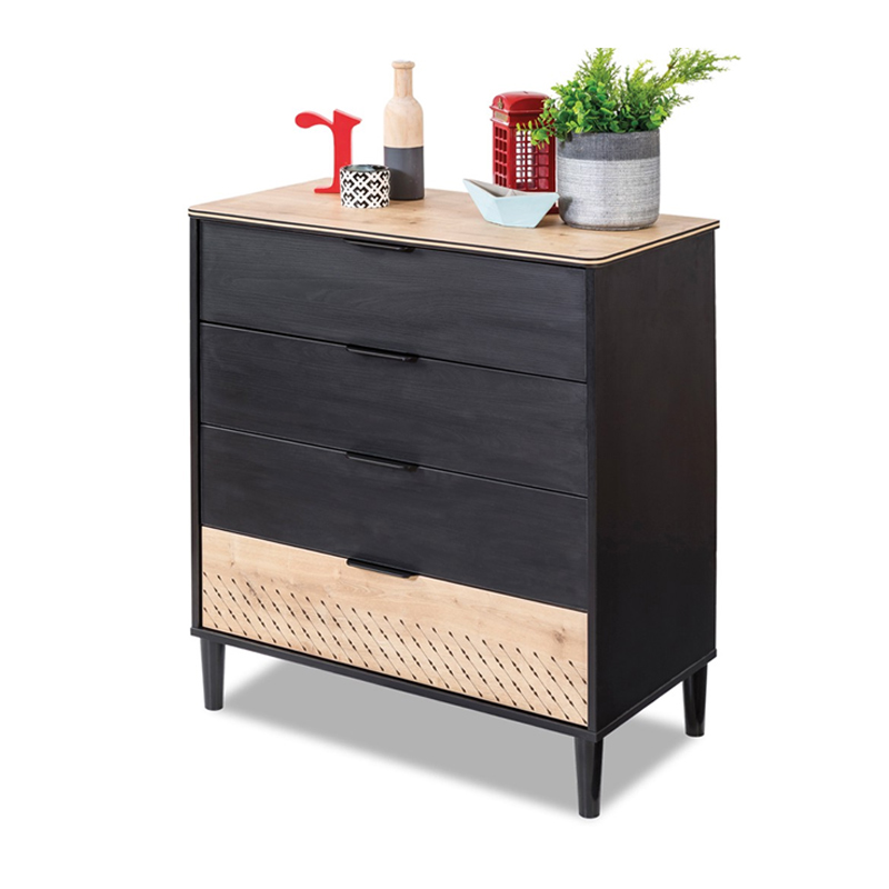 Запросить индивидуальное предложениеКомод Black – практичное решение для хранения одежды и белья в детской комнате. Комод изготовлен из экологически чистых материалов, станет прекрасным дополнением к мебели коллекции Cilek Black. В комоде четыре вместительных выдвижных ящика на роликовых направляющих. В два из них устанавливаются поперечные планки для разделения на отсеки. Ящики выдвигаются благодаря широким плоским ручкам из нескользящего материала. За счёт четырёх фигурных ножек обеспечивается устойчивость комода.