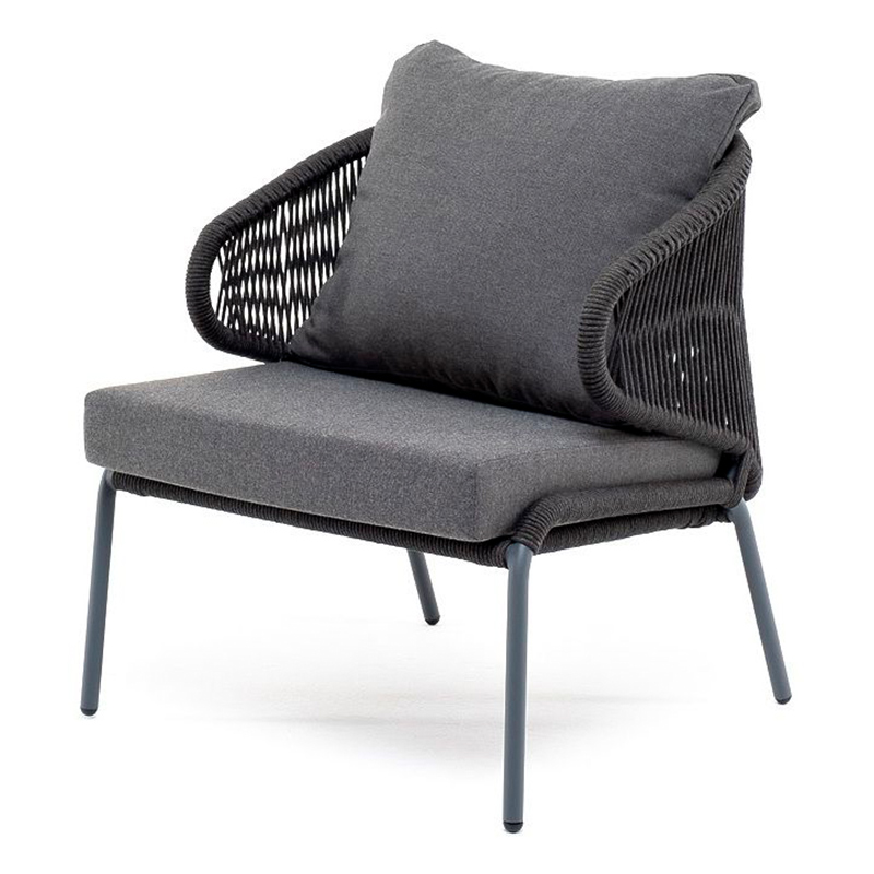 "Милан" кресло плетеное из роупа, каркас алюминиевый серый, роуп темно-серый, ткань темно-серая