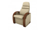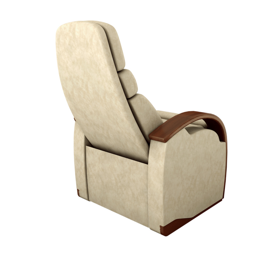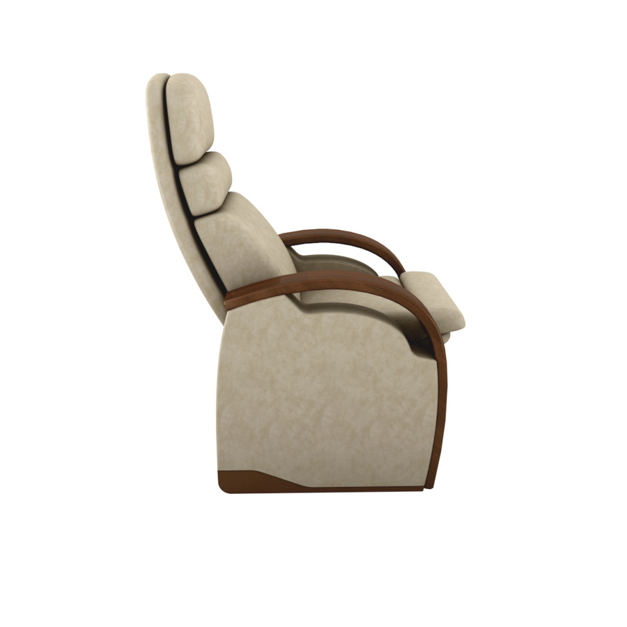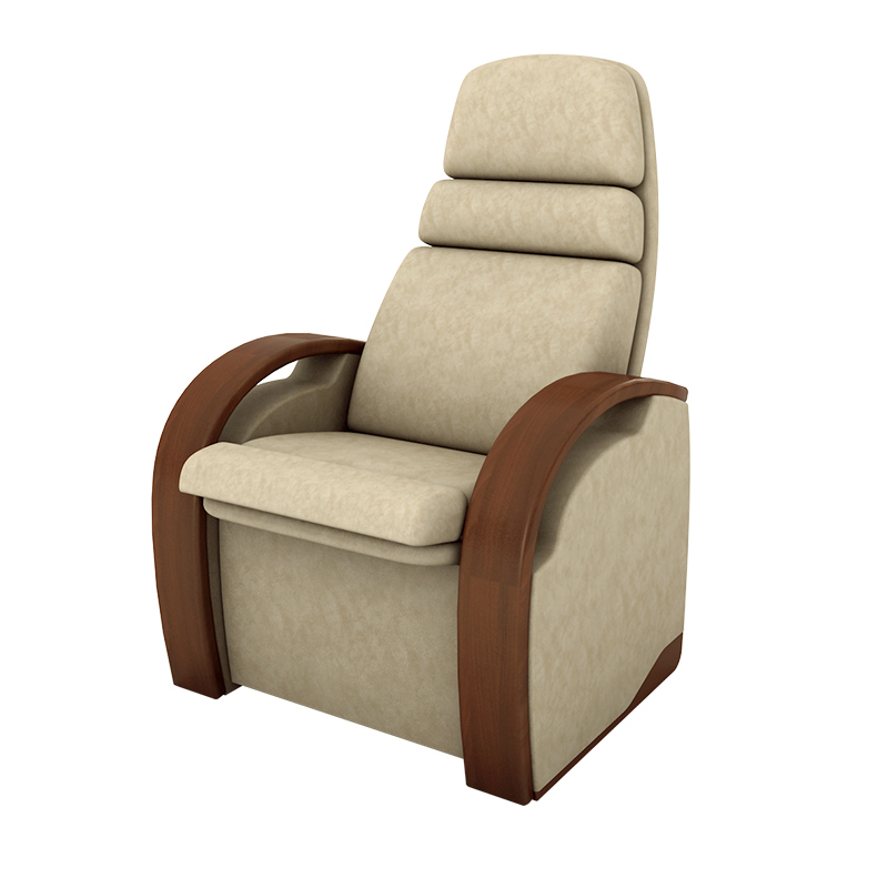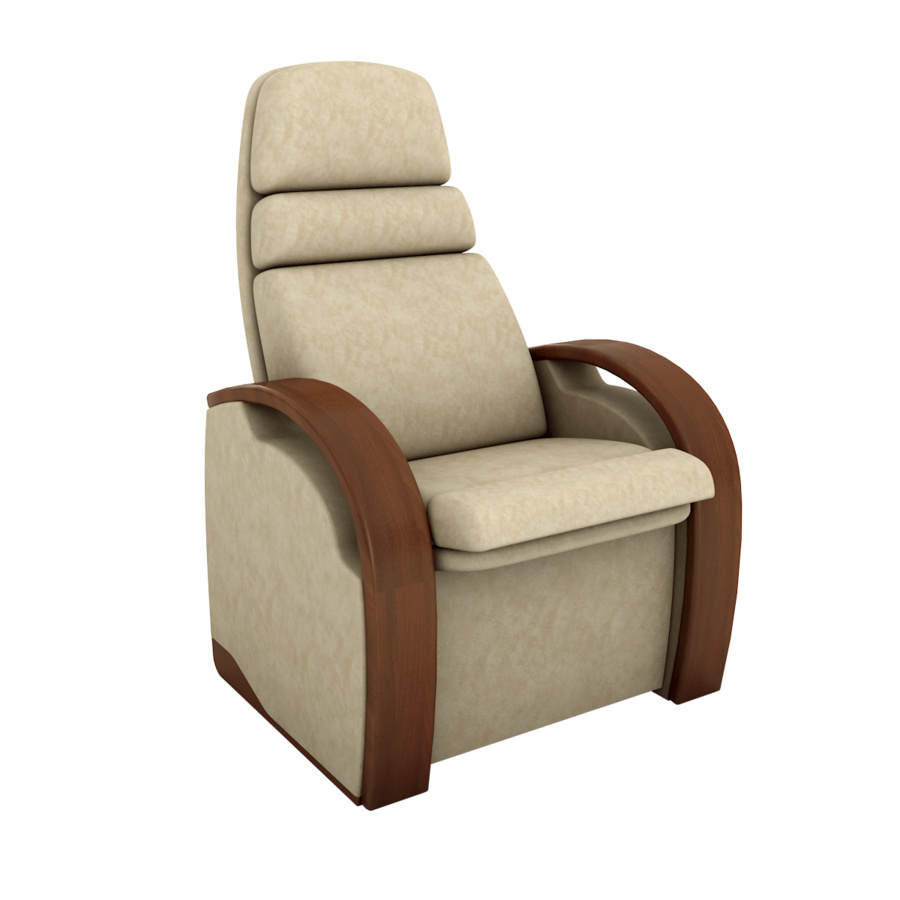 Кресло-реклайнер изготовлено из материалов высокого качества: механизм – металл, подлокотники – гнутая фанера со шпоном из натурального дуба, массив дерева и каркас - мебельная фанера, наполнитель – высокоэластичный ППУ, не теряющих своих упругих свойств на протяжении долгих лет. Кресло обито искусственной замшей приятной на ощупь, роскошно смотрится как при естественном, так и при искусственном освещении.