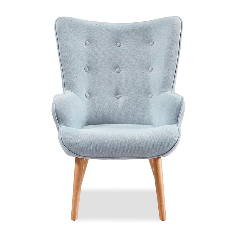 Кресло Hygge (Хюгге) нежно-голубого цвета хорошо впишется в любой интерьер. Оно не просто красивое, но и очень комфортное, с удобной спинкой и подлокотниками, способствующее расслаблению и хорошему отдыху.Такое кресло подойдет как для квартиры, так и для загородного дома или дачи.Тканевая обивка его приятная на ощупь, прочная, стойкая к повреждениям. Высокие ножки сделаны из дерева. Кресло смотрится легким и компактным, не загромождает помещение.Его можно использовать самостоятельно, а можно дополнить банкеткой – в таком случае получится целый ансамбль. Помимо голубого есть несколько вариантов цветов обивки.