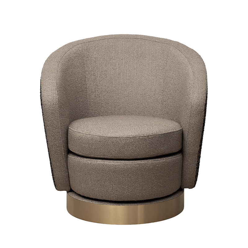Запросить индивидуальное предложениеЕсли хотите купить вращающееся кресло, обратите внимание на модель Napoli с обивкой из рогожки. Это эффектная, практичная и невероятно удобная модель, которая легко сочетается с другой современной мебелью за счет универсального дизайна и нейтрального цвета. Стильное кресло из серой рогожки выглядит дорого и статусно благодаря позолоченному декору на основании. Оно будет прекрасно смотреться в гостиной или спальне, а за счет компактных размеров найдет себе место даже в небольшой прихожей. Обивка легко чистится, не накапливает в себе пыль, сохраняет первоначальный внешний вид долгие годы.